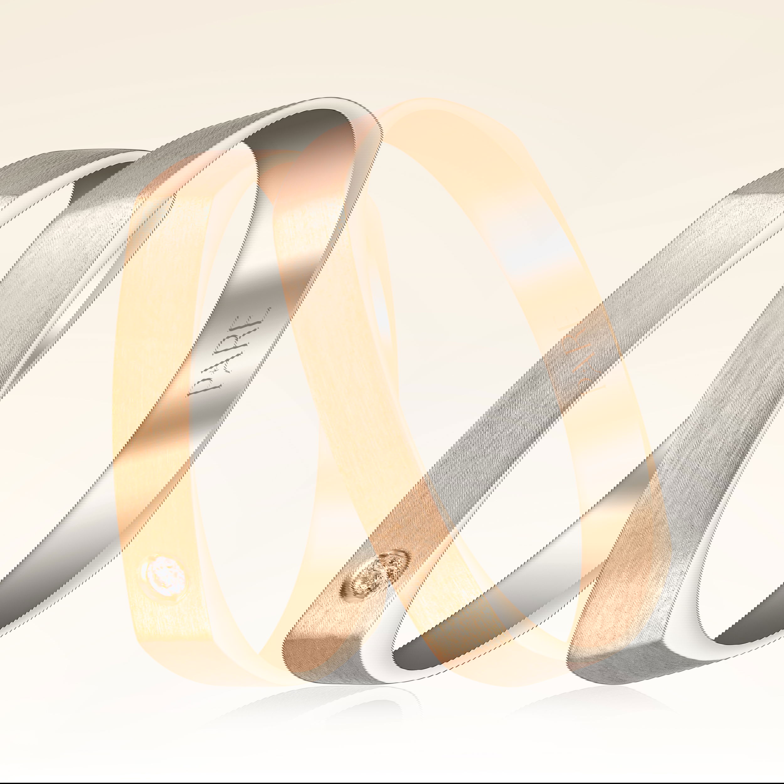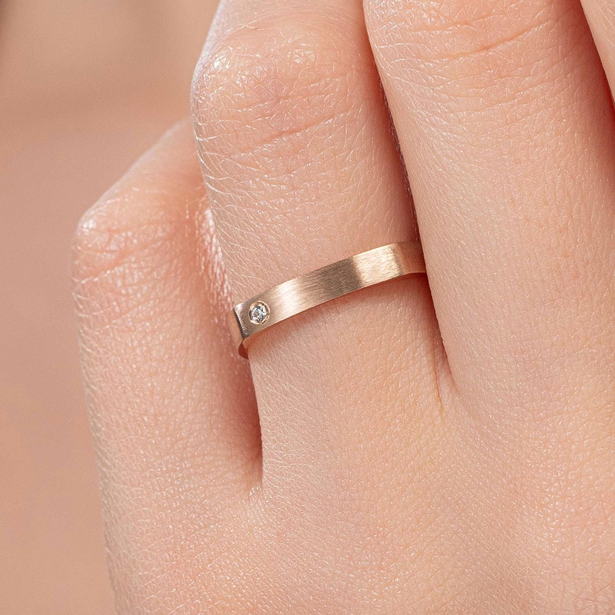 0,02 Karat Pırlantalı Kare Mat Çift Alyans - Yaklaşık 6,14gr. 14 Ayar Rose Altın