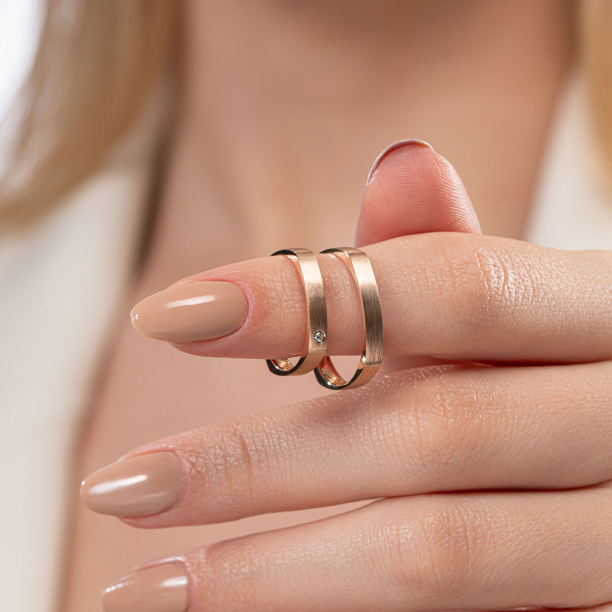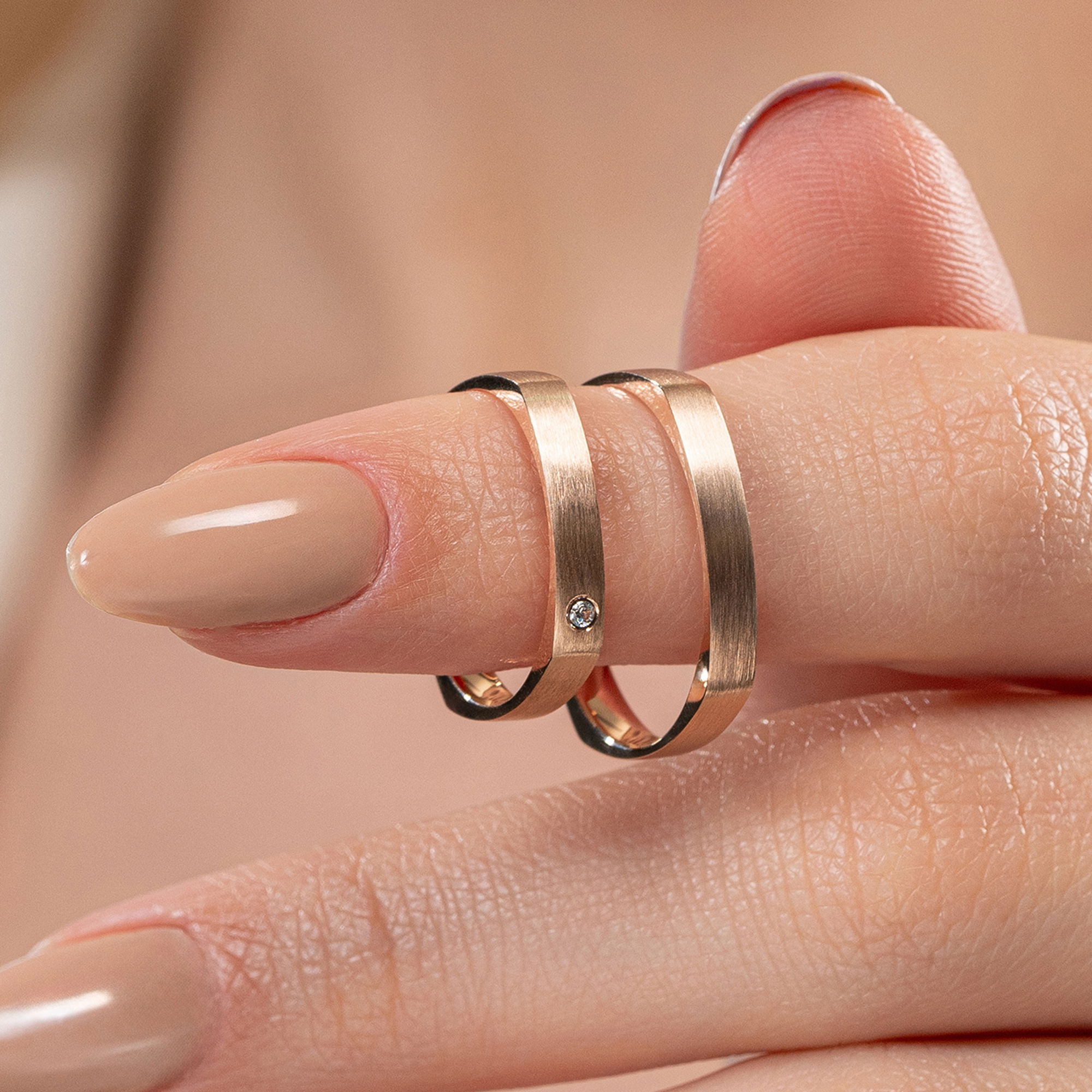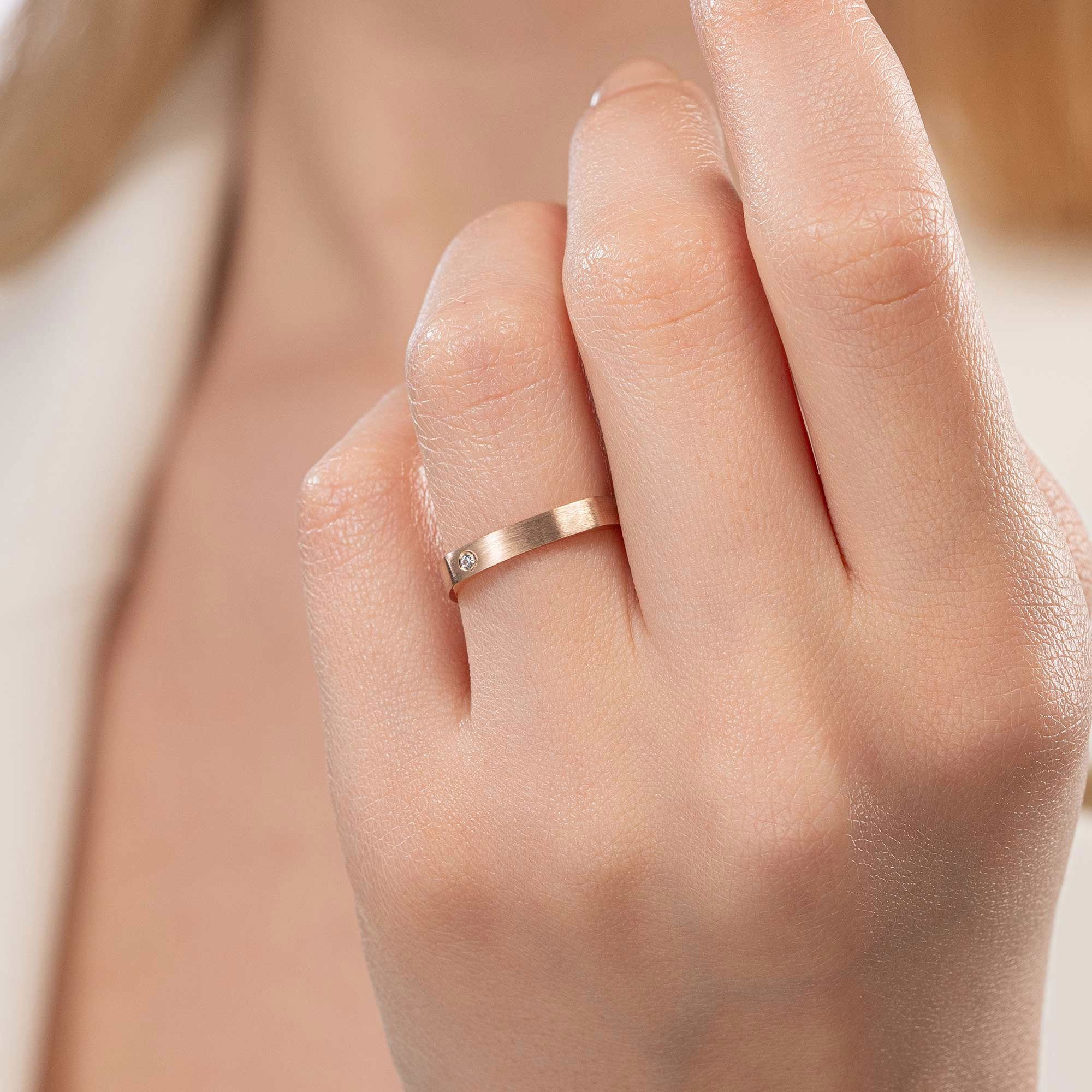 0,02 Karat Pırlantalı Kare Mat Kadın Alyans - Yaklaşık 2,88gr. 14 Ayar Rose Altın