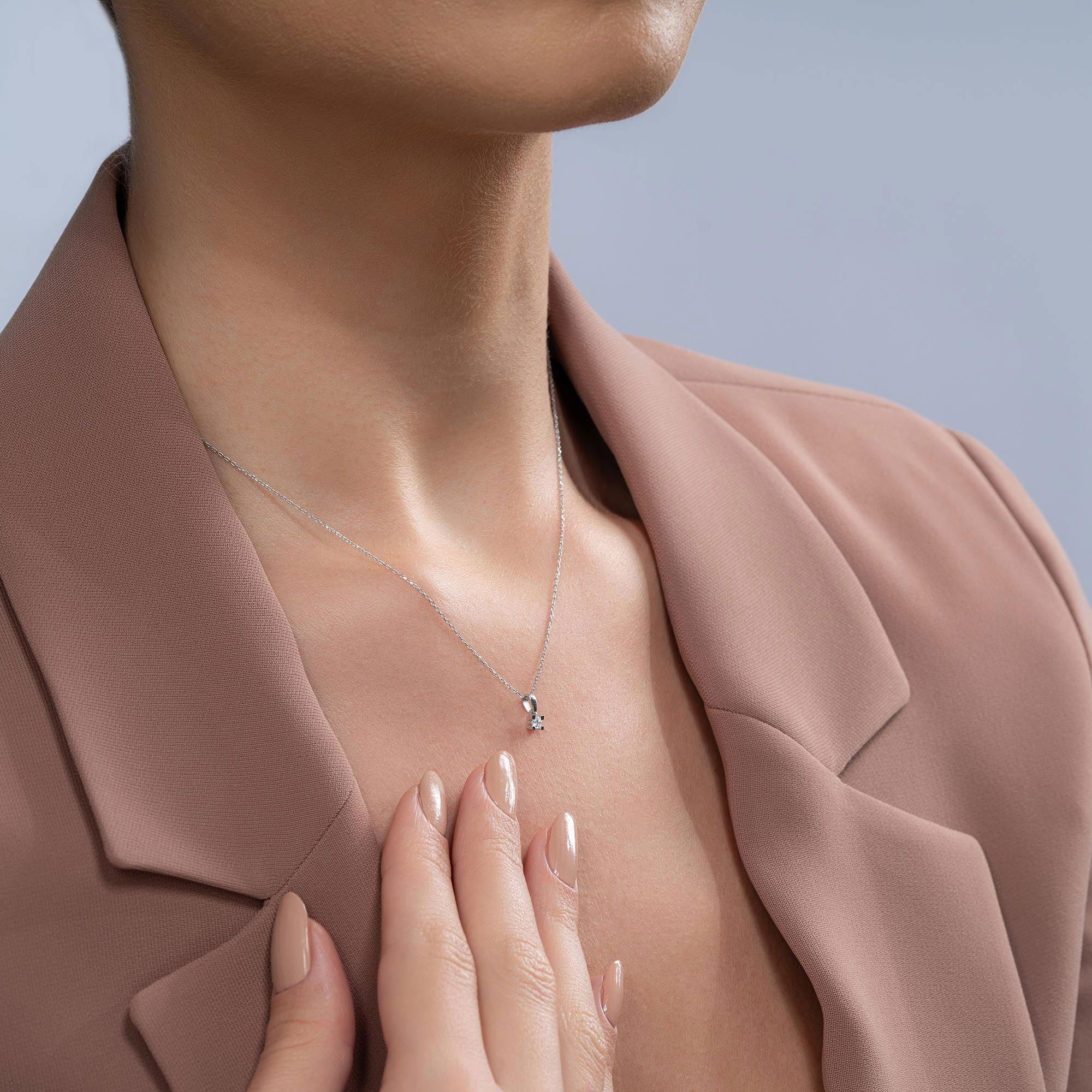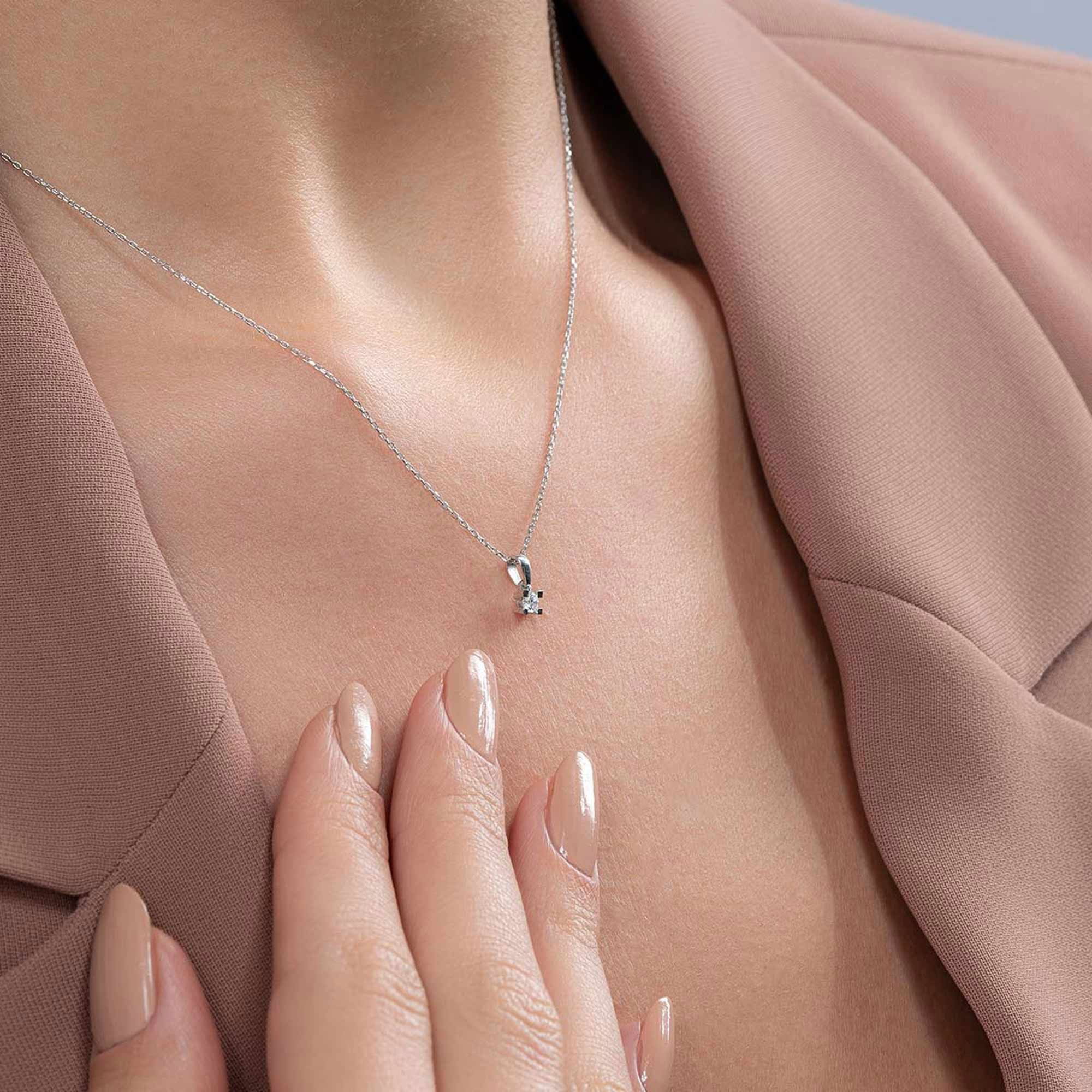 0,06 Karat Pırlanta Tektaş Kolye - Yaklaşık 1,18gr. 14 Ayar Beyaz Altın