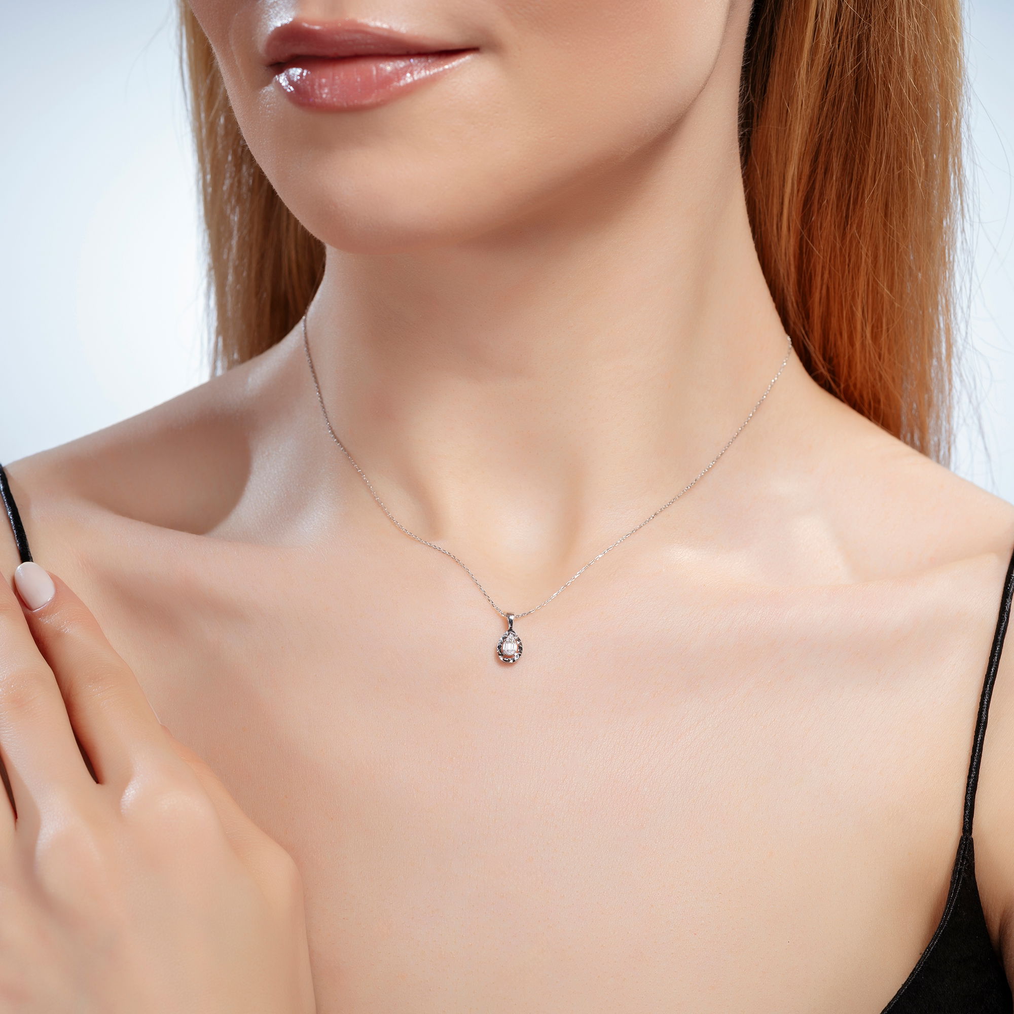 0,07 Karat Efektli Baget Pırlanta Kolye - Yaklaşık 1,48gr. 14 Ayar Beyaz Altın