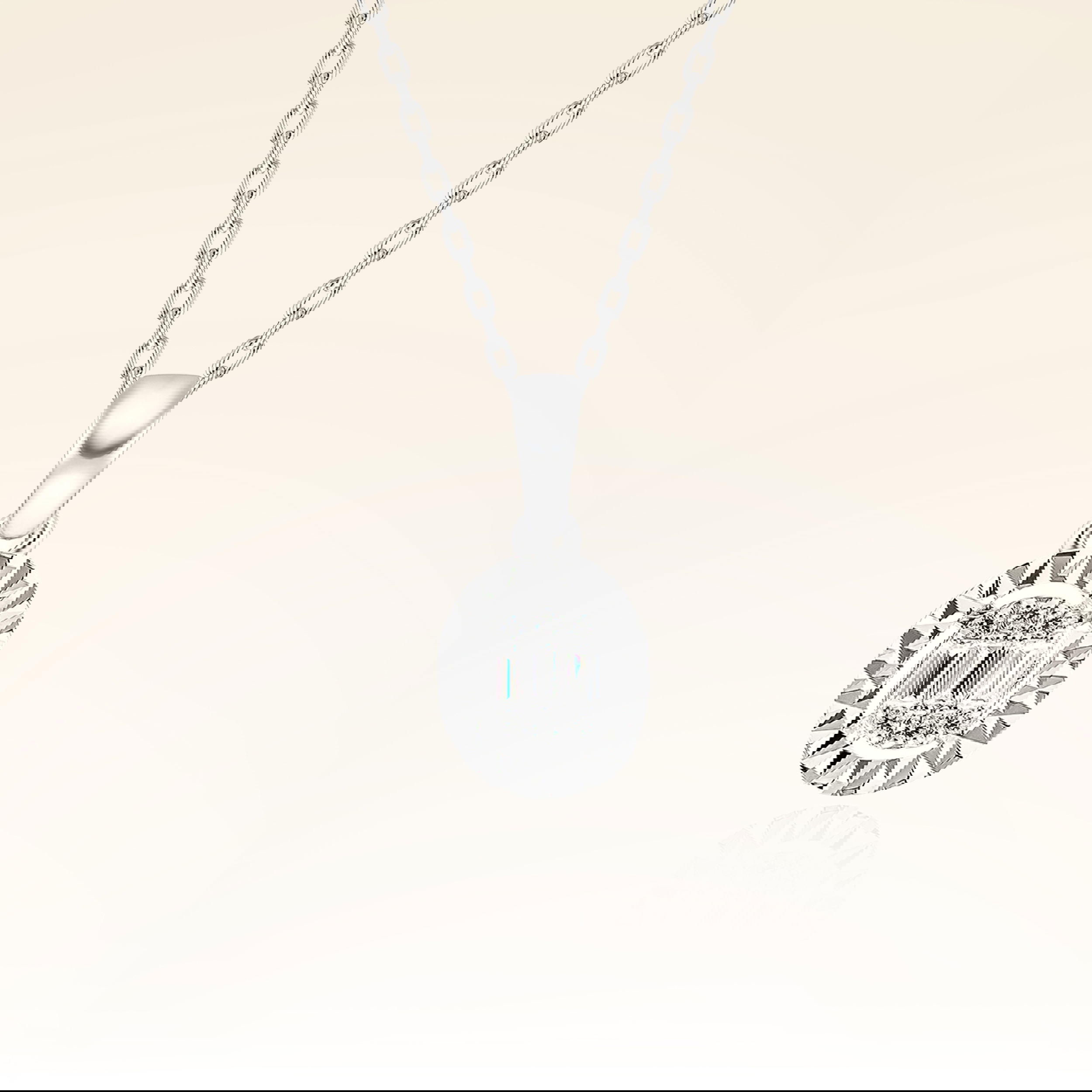 Üründe G renk SI berraklığında baget ve yuvarlak kesim pırlanta taşlar kullanılmaktadır. Parlaklığı ve netliğiyle dikkat çeken bu taşlar, zarif bir görünüm sunar. Pırlanta kolye, 42,5 cm standart zincir uzunluğu ile üretilmiştir.