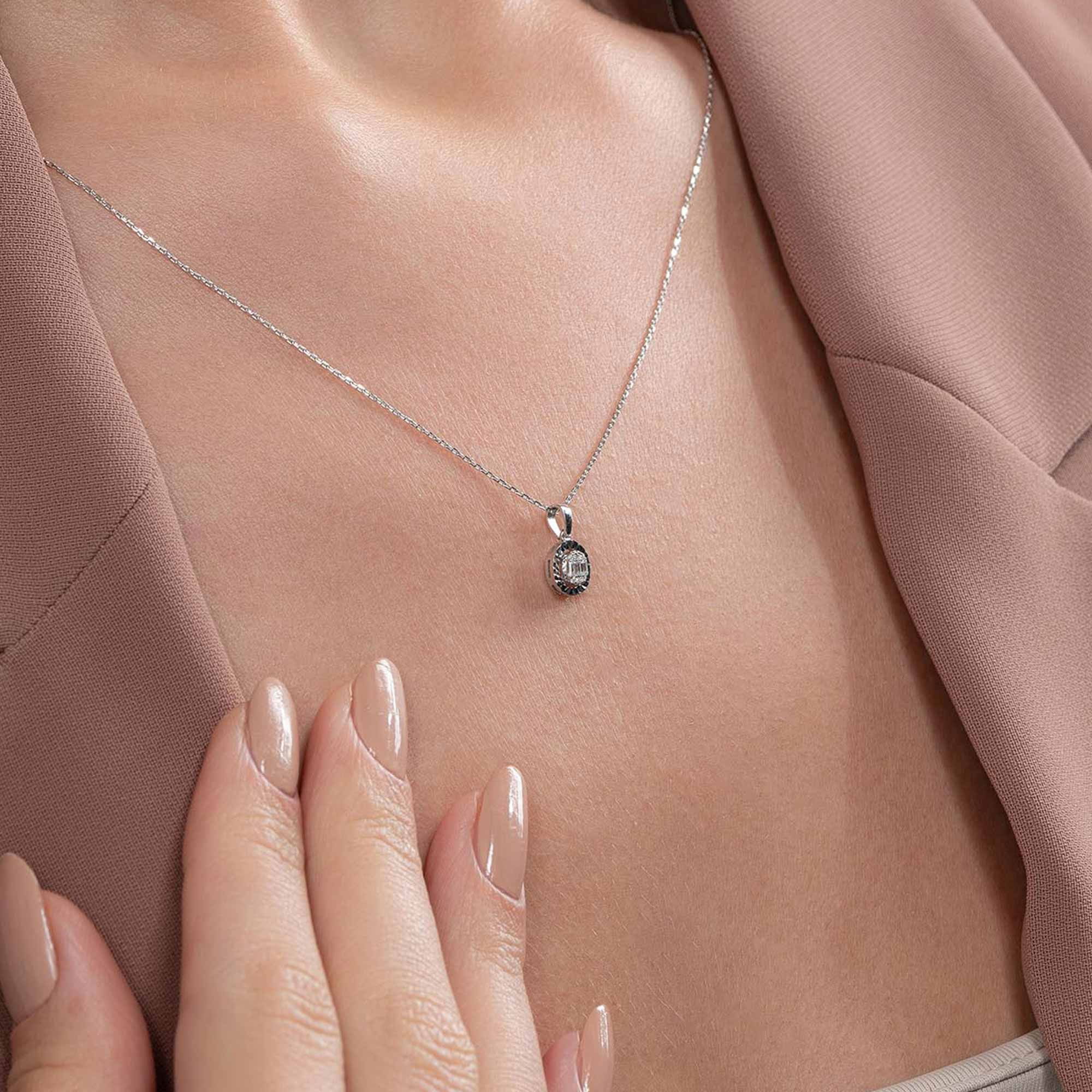 0,07 Karat Pırlanta Baget Kolye - Yaklaşık 1,45gr. 14 Ayar Beyaz Altın