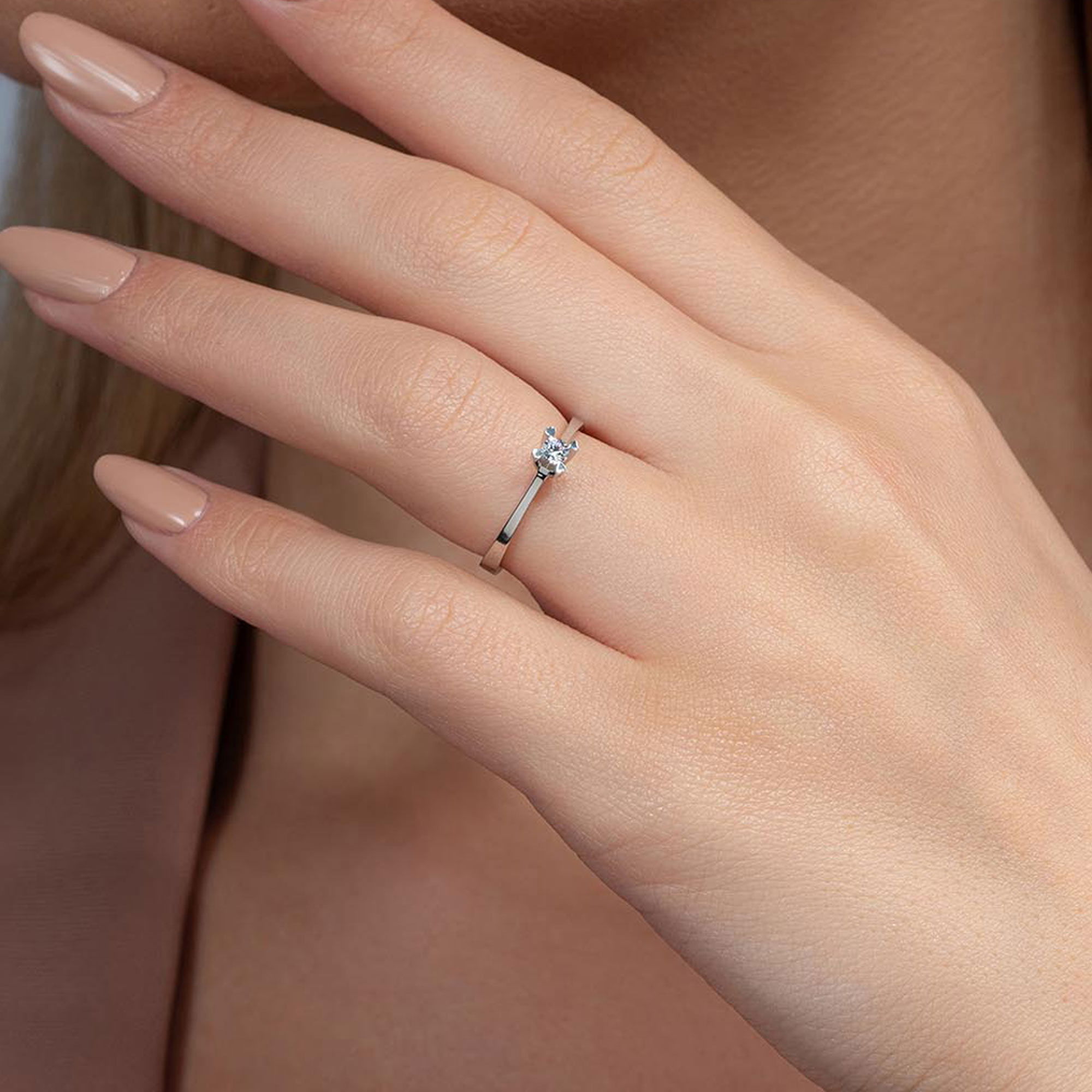 Üründe G renk SI berraklığında yuvarlak kesim pırlanta taşlar kullanılmaktadır. Parlaklığı ve netliğiyle dikkat çeken bu taşlar, zarif bir görünüm sunar. Altın ağırlığı, seçilen yüzük ölçüsüne göre farklılık gösterebilir.