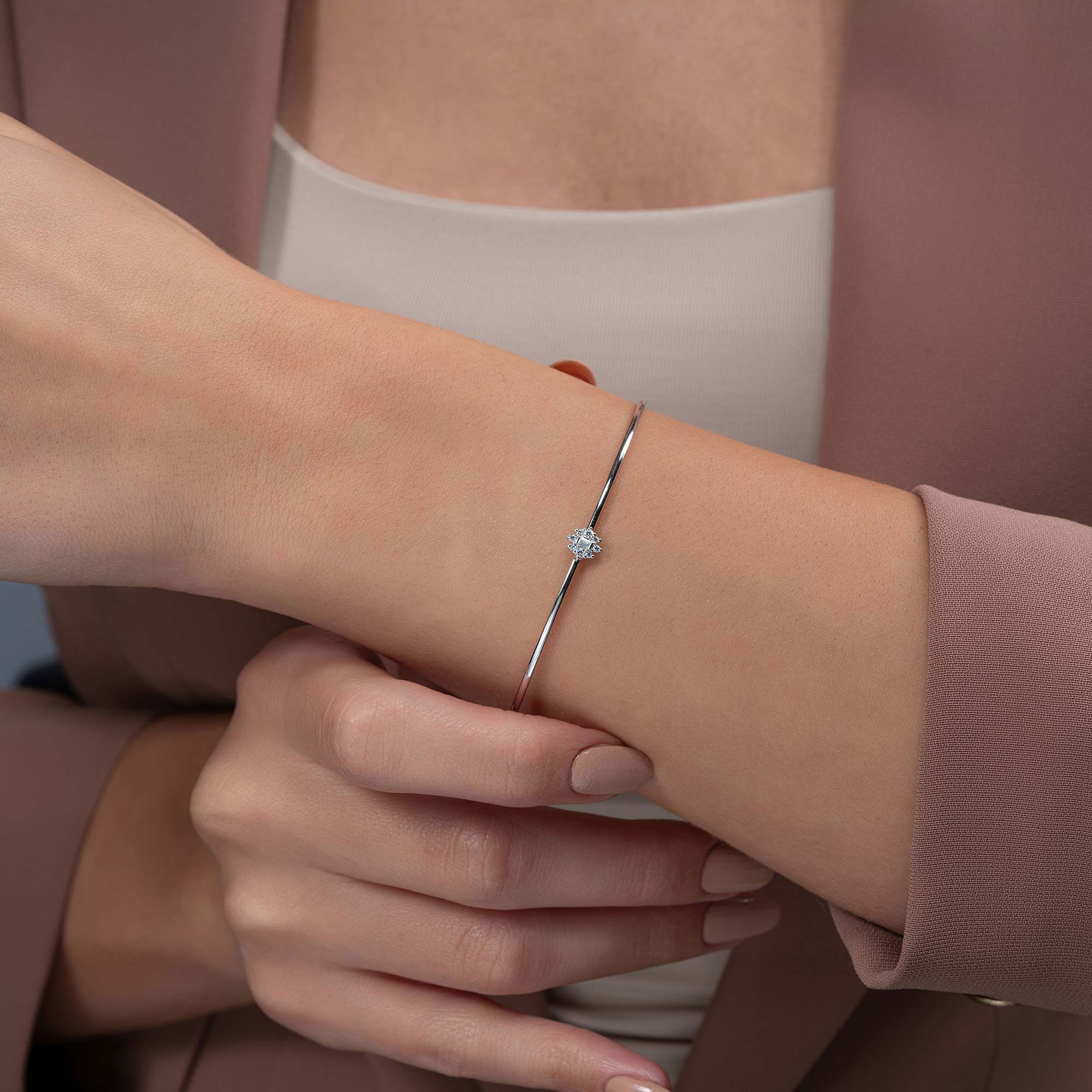 Üründe G renk SI berraklığında baget ve yuvarlak kesim pırlanta taşlar kullanılmaktadır. Parlaklığı ve netliğiyle dikkat çeken bu taşlar, zarif bir görünüm sunar. Altın ağırlığı seçilen bileklik ölçüsüne göre değişiklik gösterebilir.