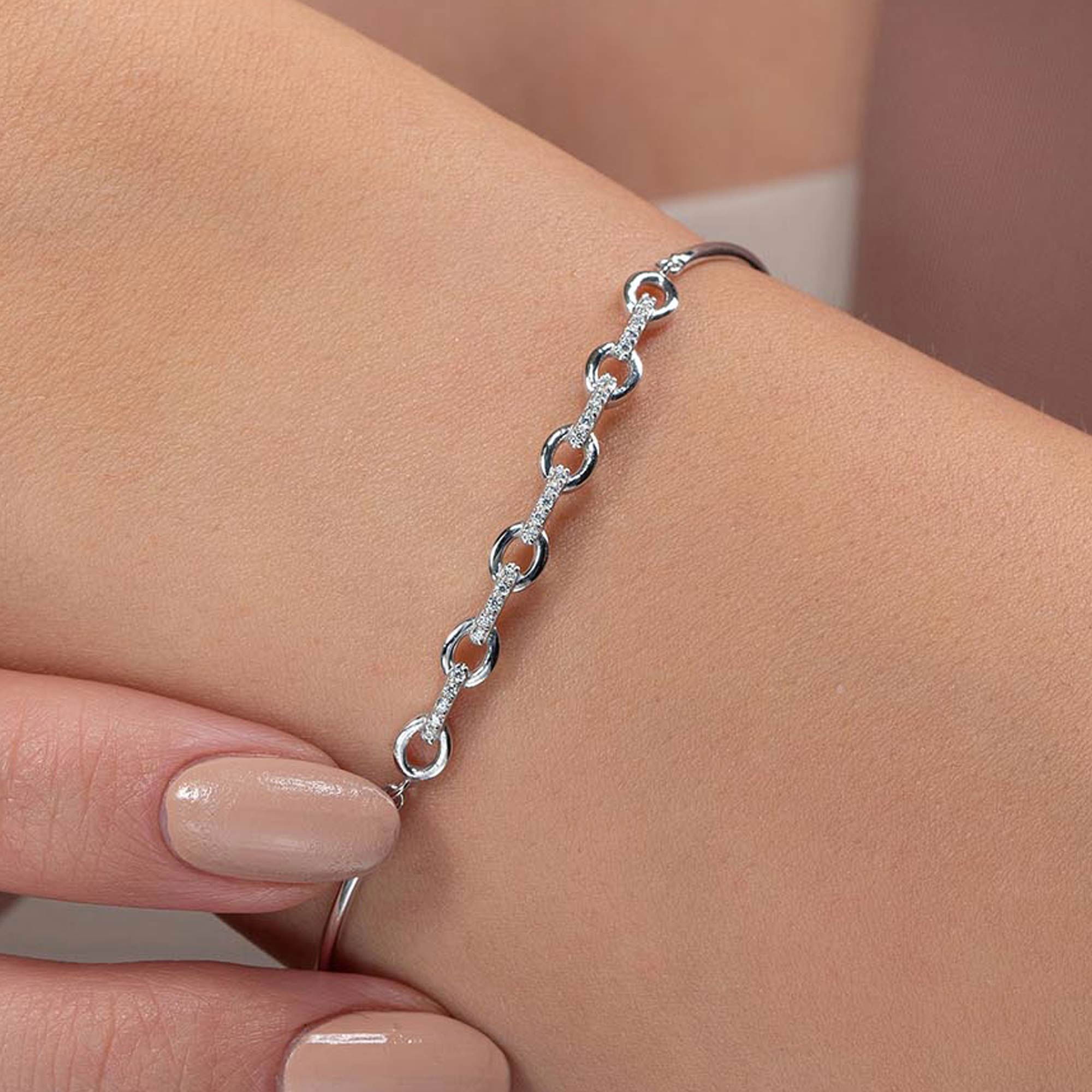 0,12 Karat Fantezi Pırlanta Bileklik - Yaklaşık 4,75gr. 14 Ayar Beyaz Altın