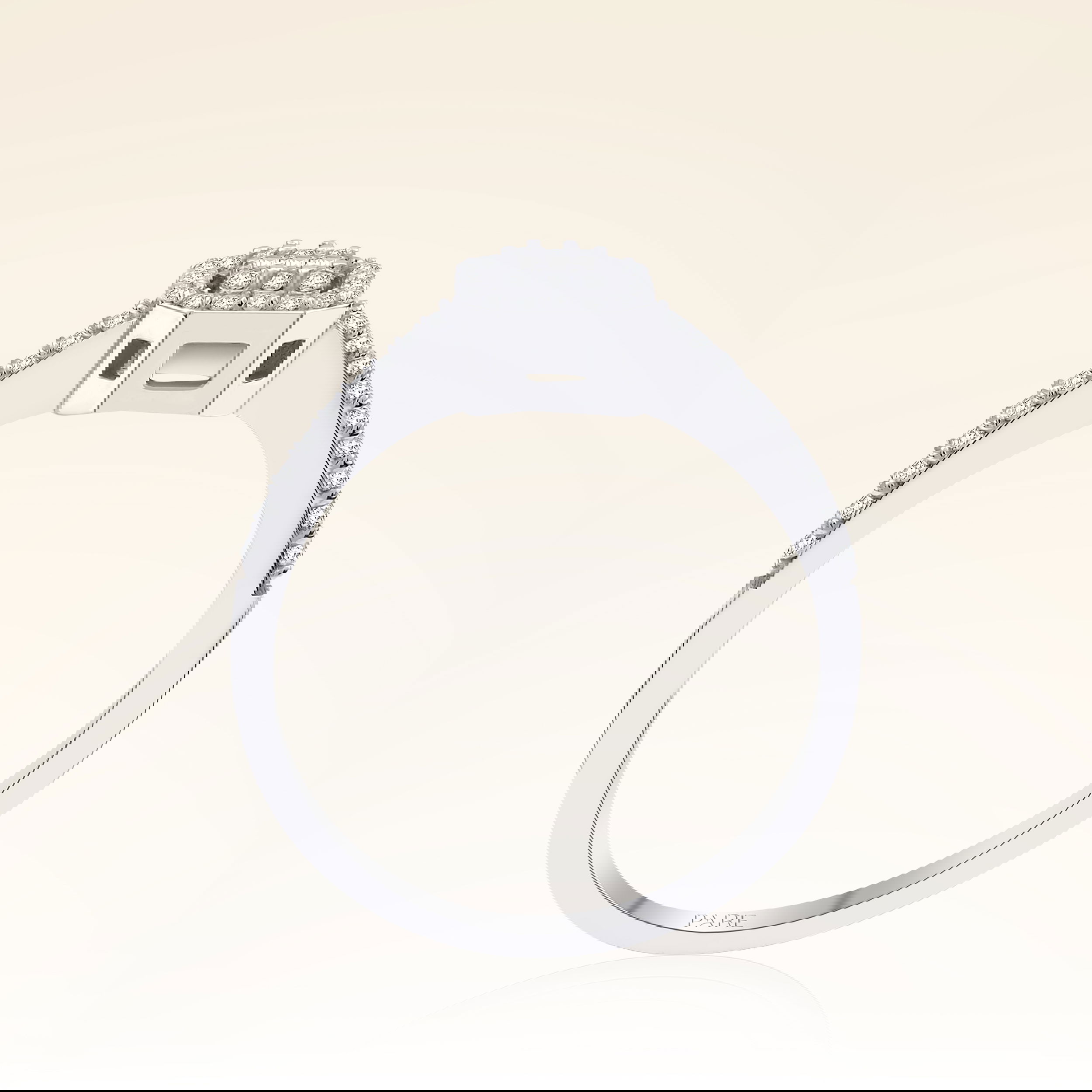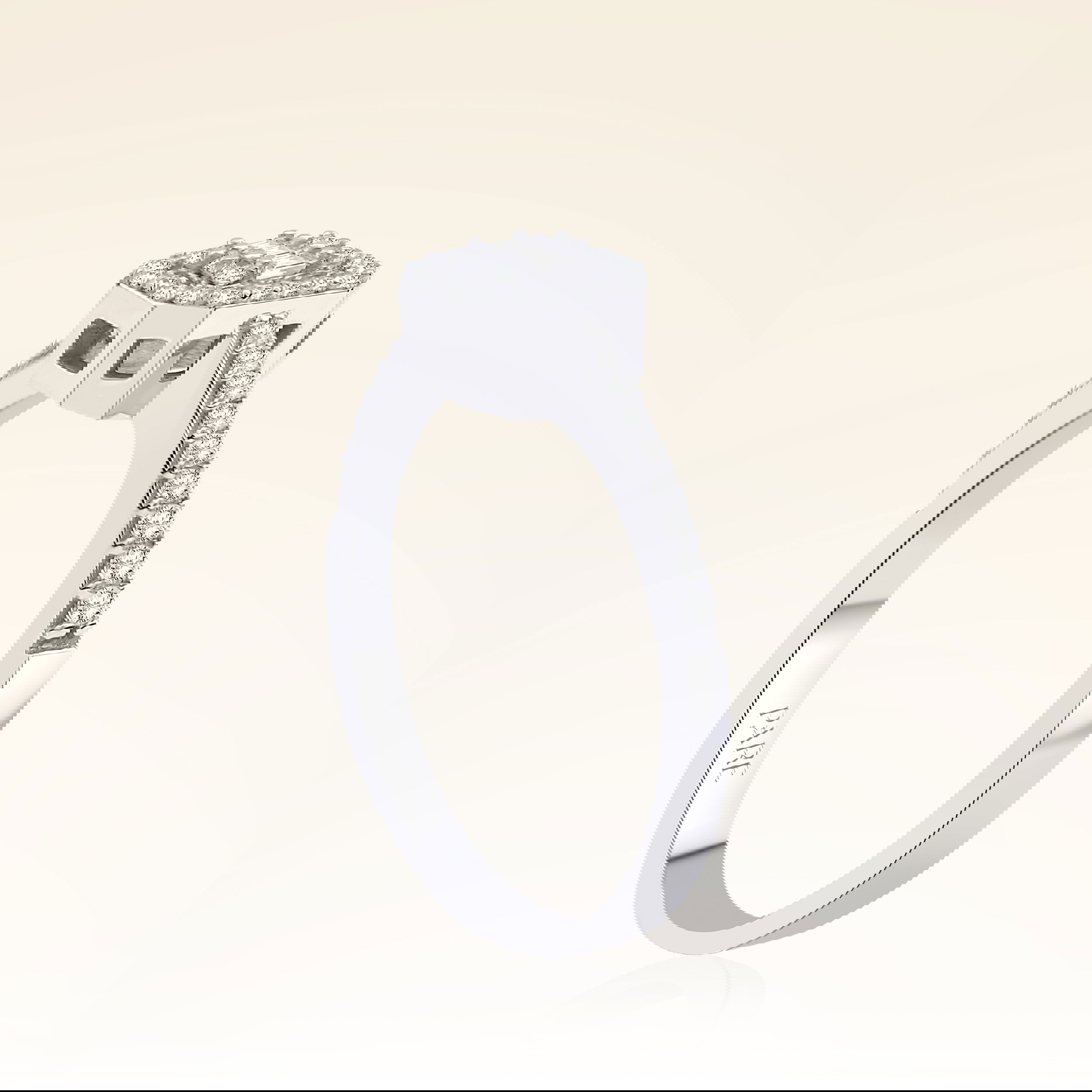 Üründe G renk SI berraklığında baget ve yuvarlak kesim pırlanta taşlar kullanılmaktadır. Parlaklığı ve netliğiyle dikkat çeken bu taşlar, zarif bir görünüm sunar. Altın ağırlığı, seçilen yüzük ölçüsüne göre farklılık gösterebilir.