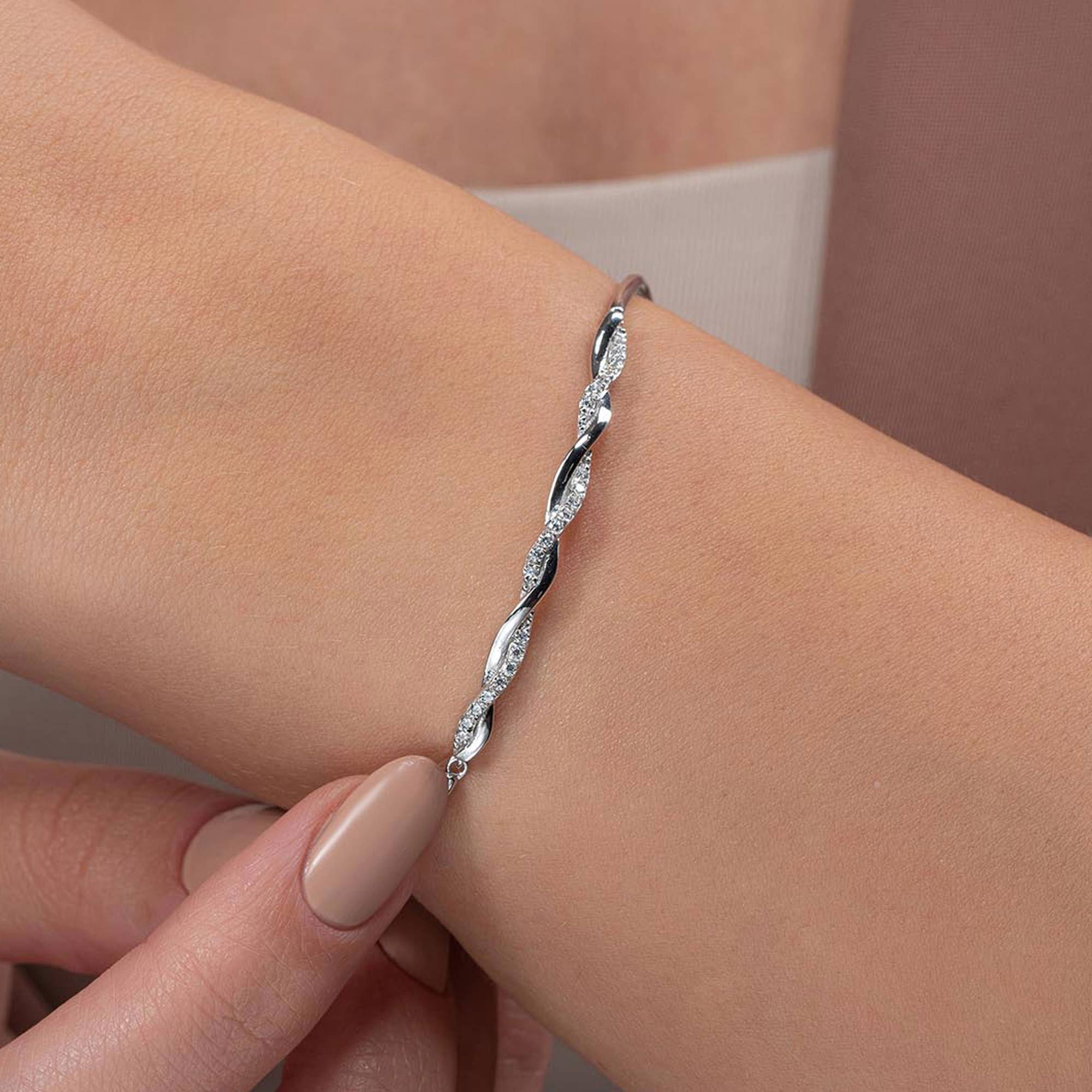 0,23 Karat Fantezi Pırlanta Bileklik - Yaklaşık 5,17gr. 14 Ayar Beyaz Altın
