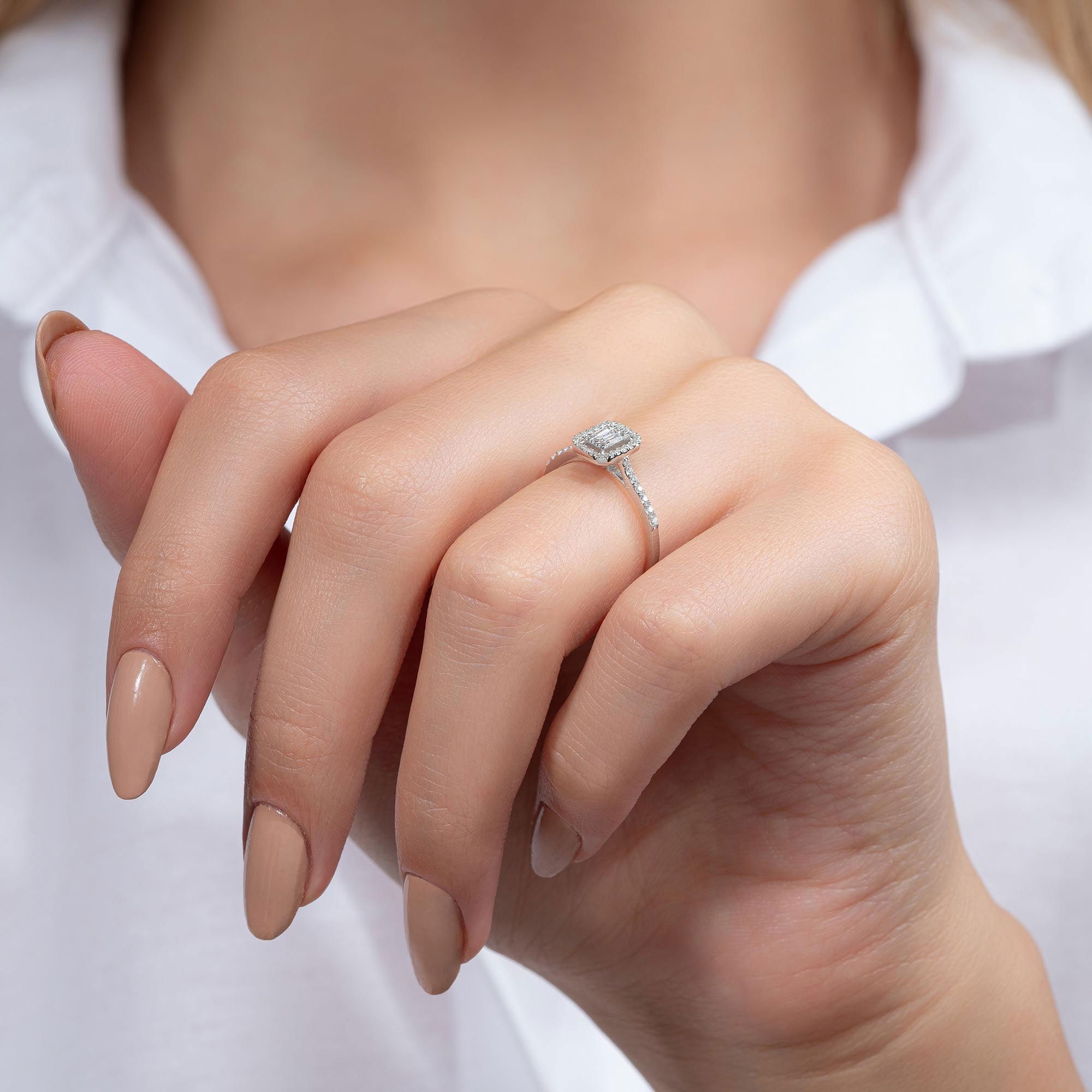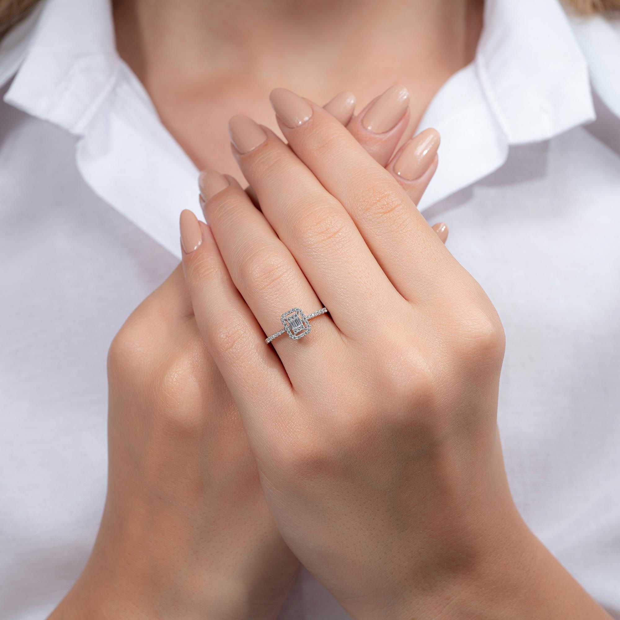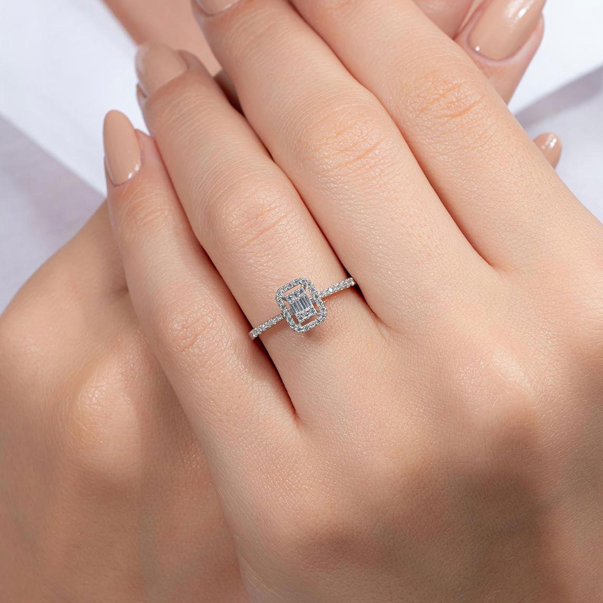 Gelince Haber VerÜründe G renk SI berraklığında baget ve yuvarlak kesim pırlanta taşlar kullanılmaktadır. Parlaklığı ve netliğiyle dikkat çeken bu taşlar, zarif bir görünüm sunar. Altın ağırlığı, seçilen yüzük ölçüsüne göre farklılık gösterebilir.