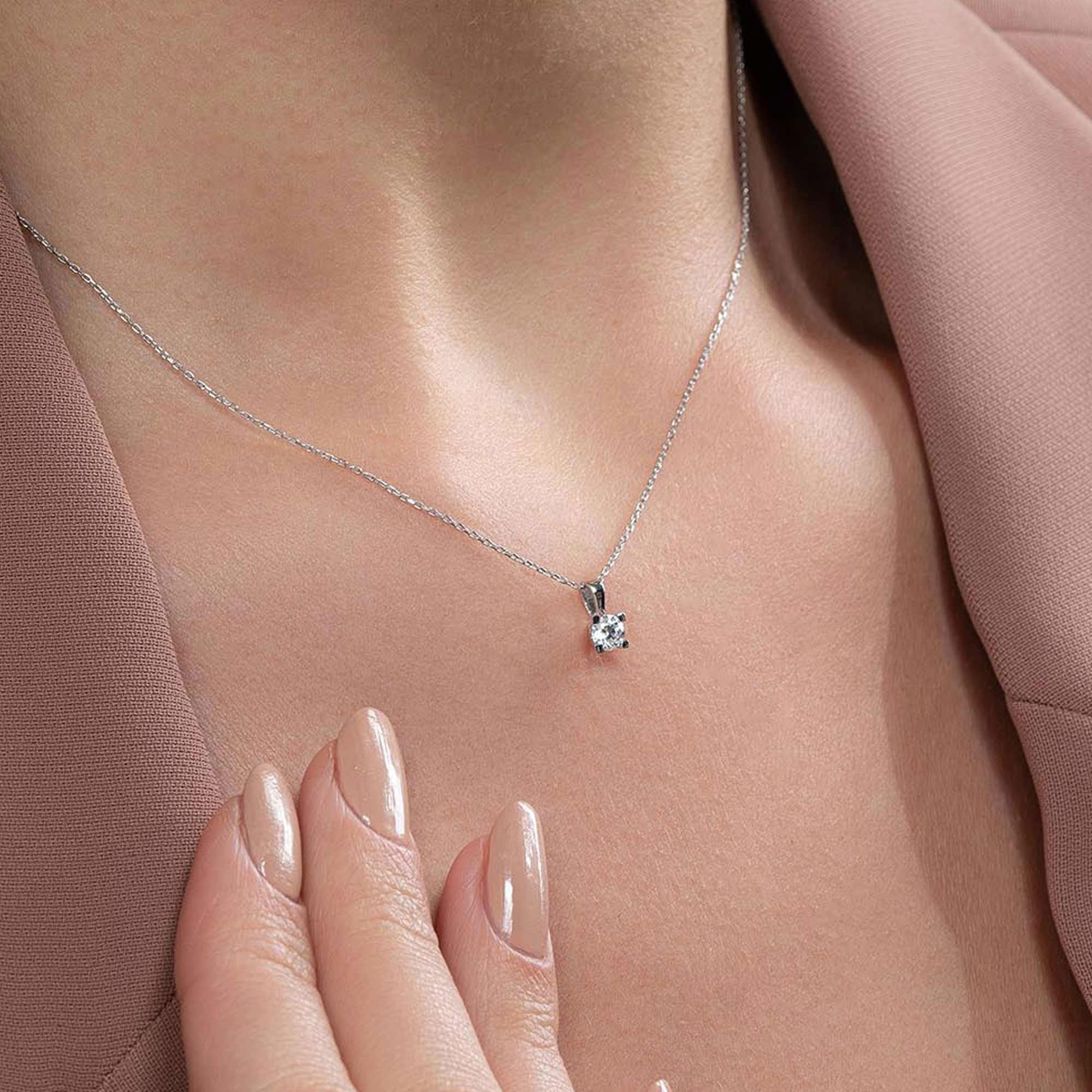 0,25 Karat Tektaş Pırlanta Kolye - Yaklaşık 1,24gr. 14 Ayar Beyaz Altın