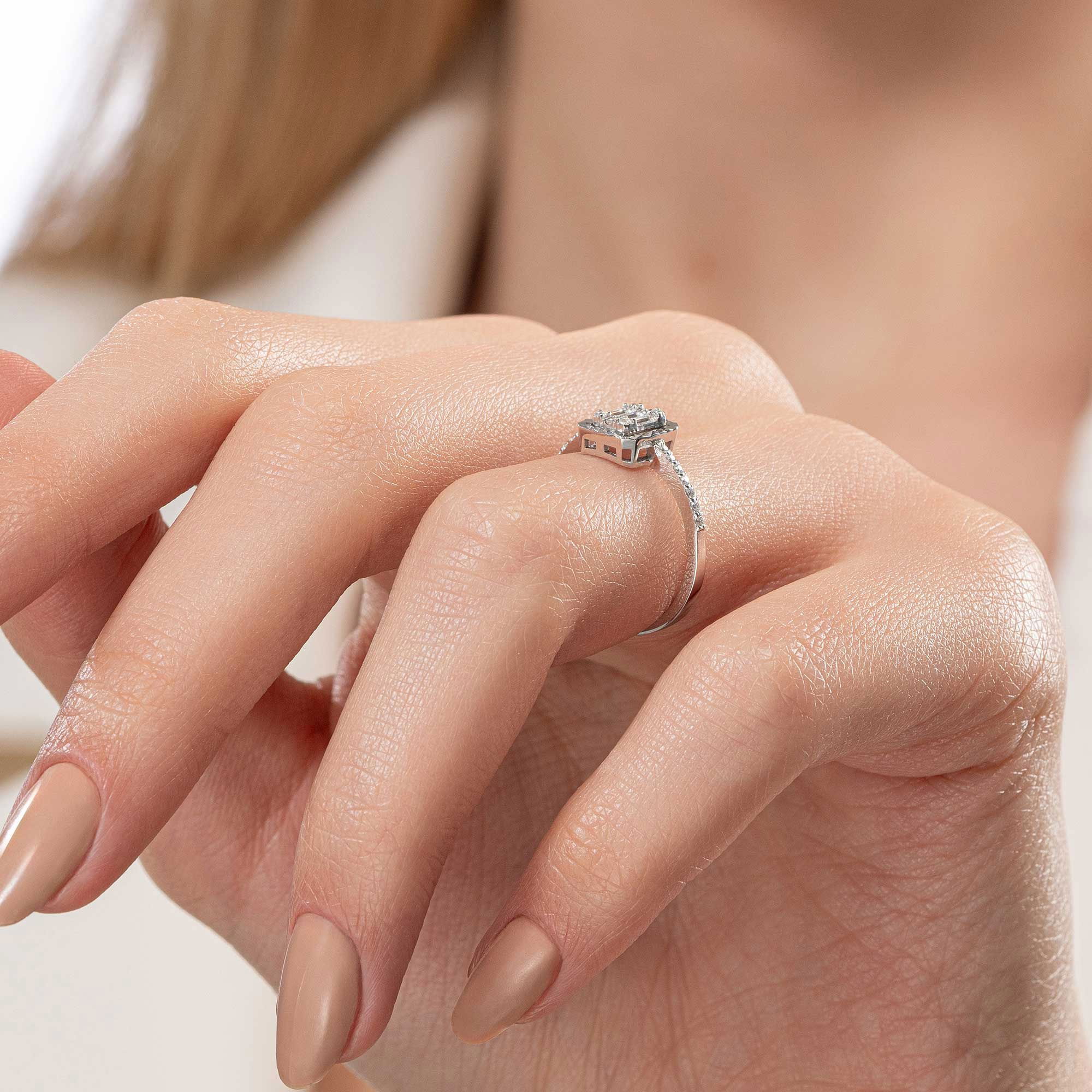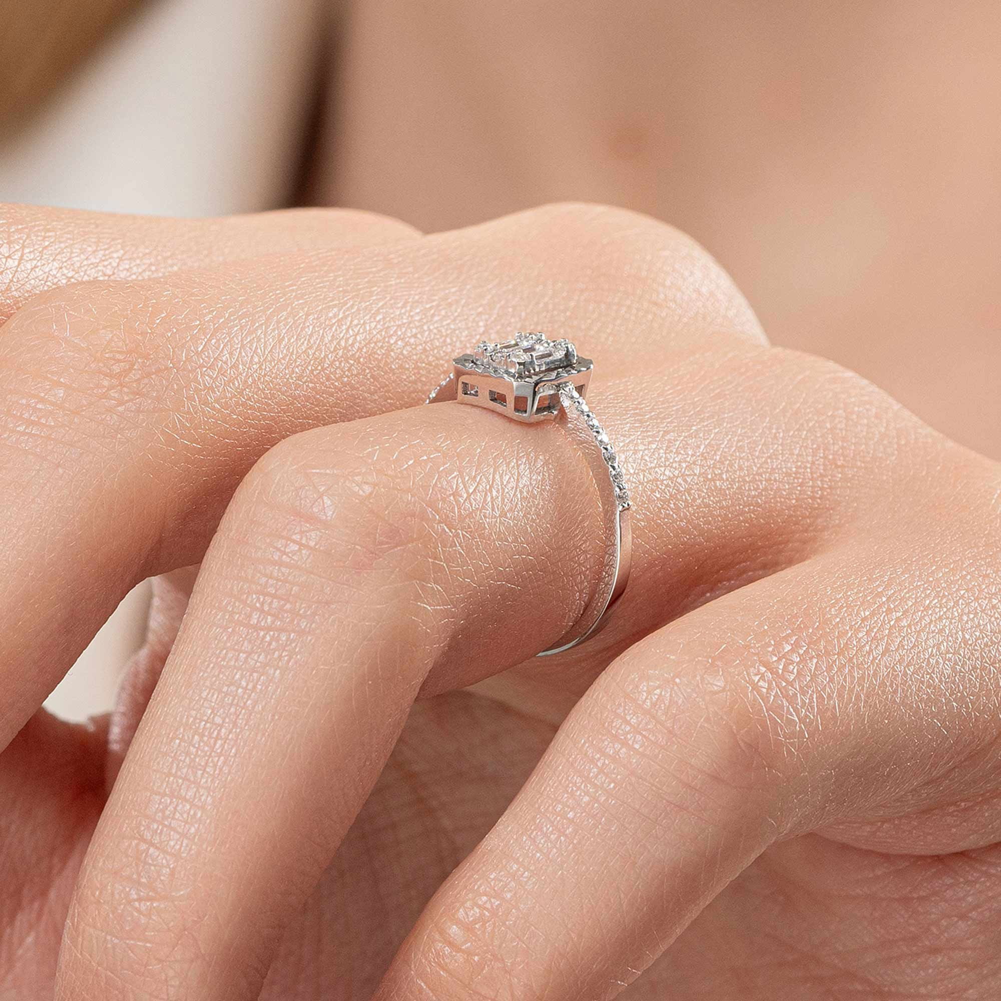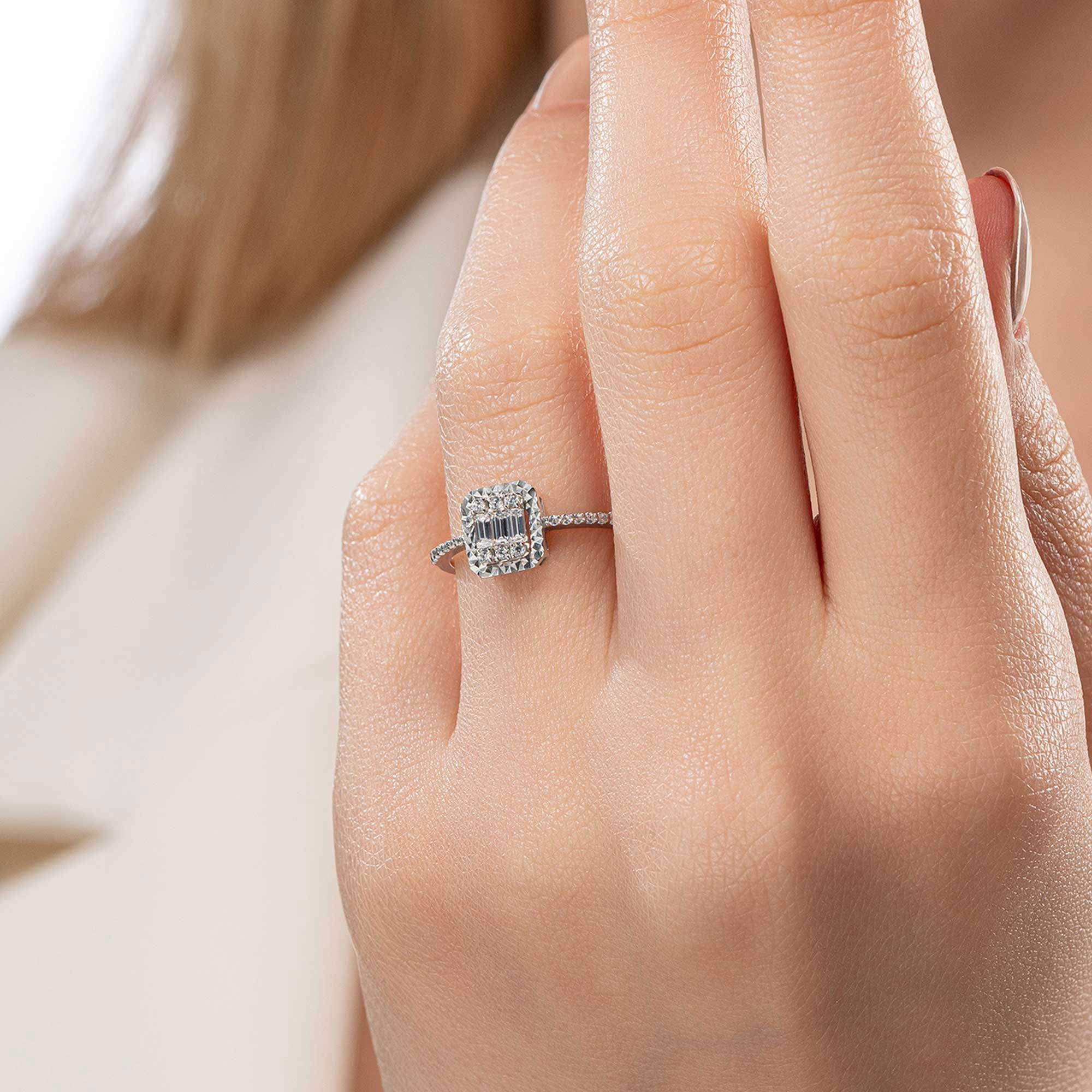 Gelince Haber VerÜründe G renk SI berraklığında baget ve yuvarlak kesim pırlanta taşlar kullanılmaktadır. Parlaklığı ve netliğiyle dikkat çeken bu taşlar, zarif bir görünüm sunar. Altın ağırlığı, seçilen yüzük ölçüsüne göre farklılık gösterebilir.