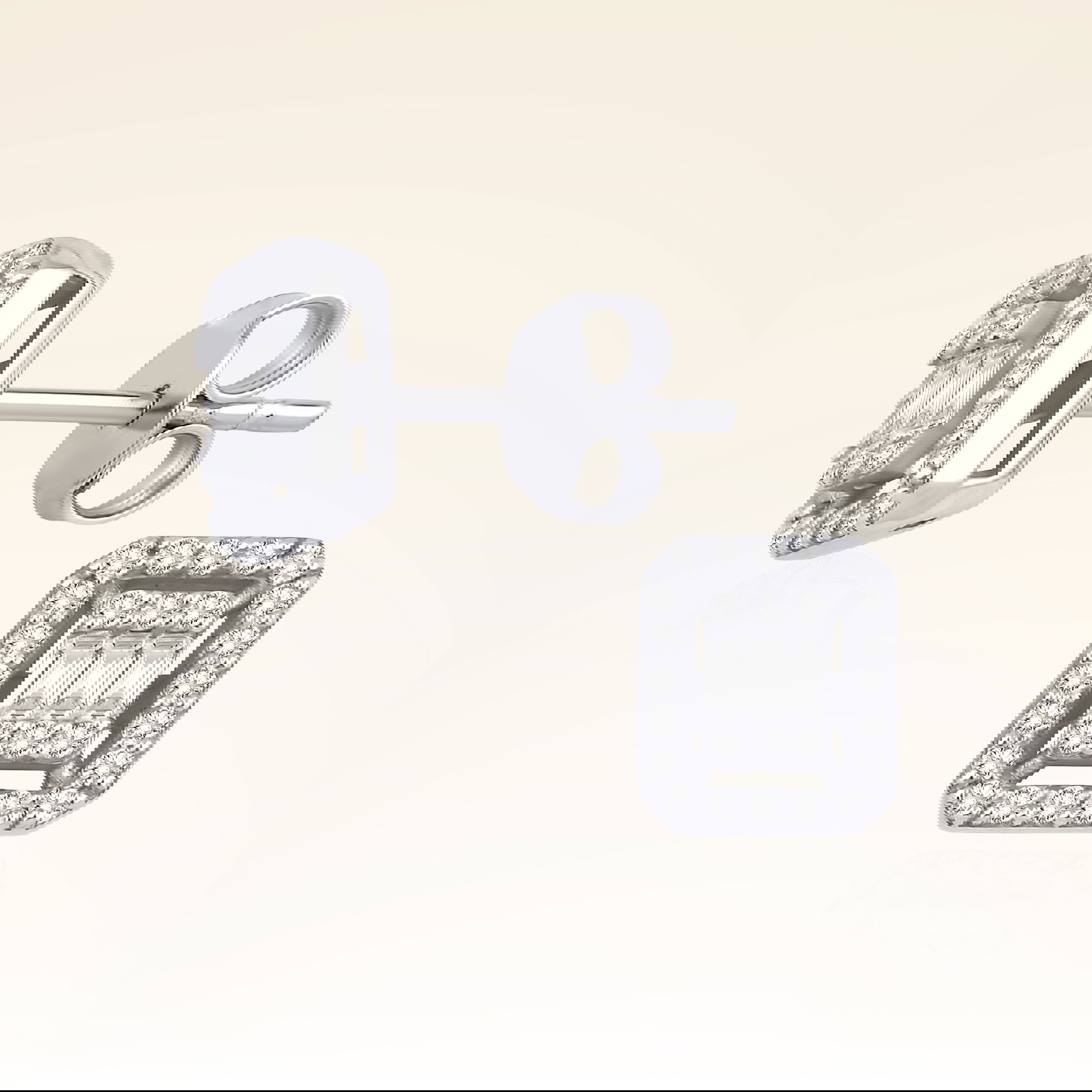 Üründe G renk SI berraklığında baget ve yuvarlak kesim pırlanta taşlar kullanılmaktadır. Parlaklığı ve netliğiyle dikkat çeken bu taşlar, zarif bir görünüm sunar.