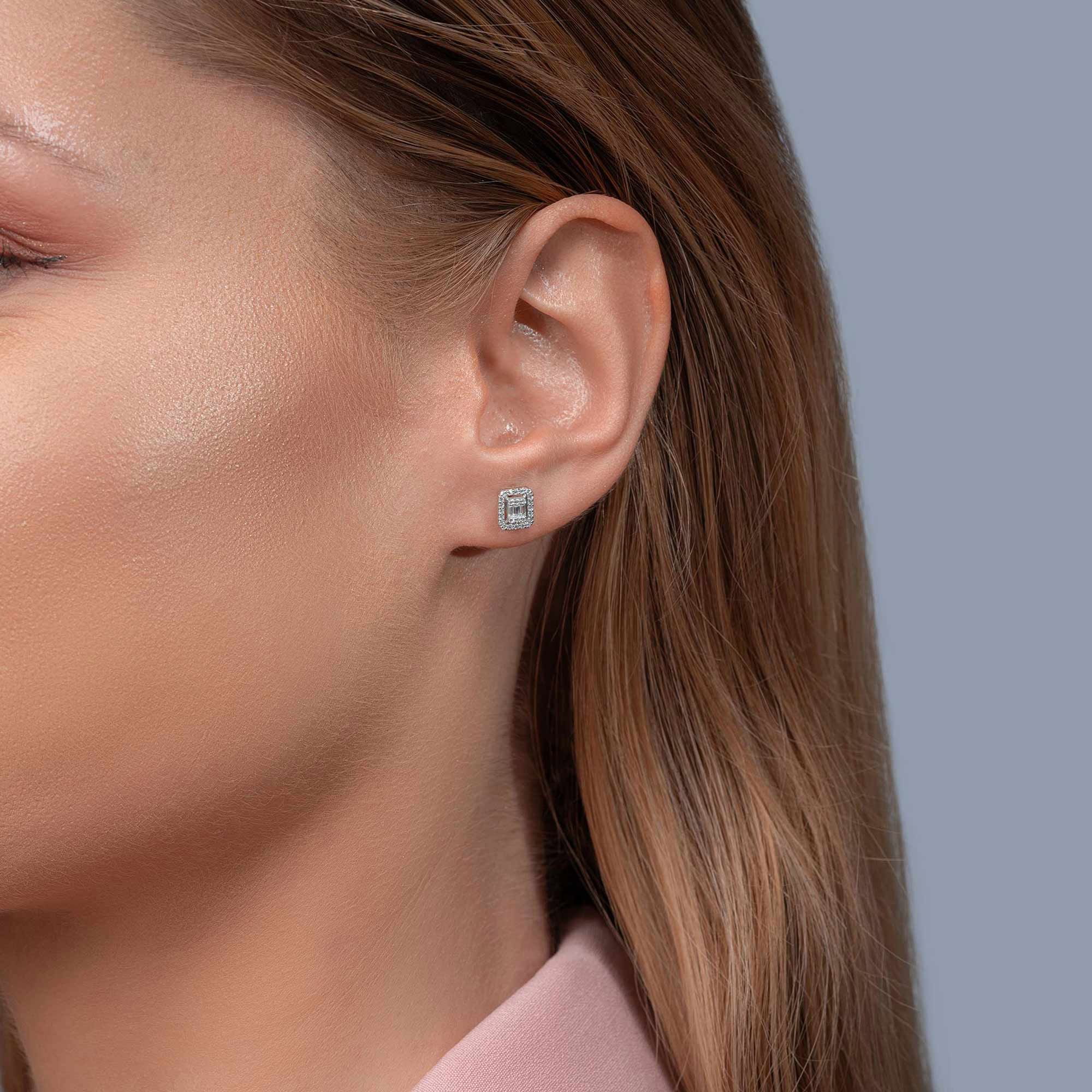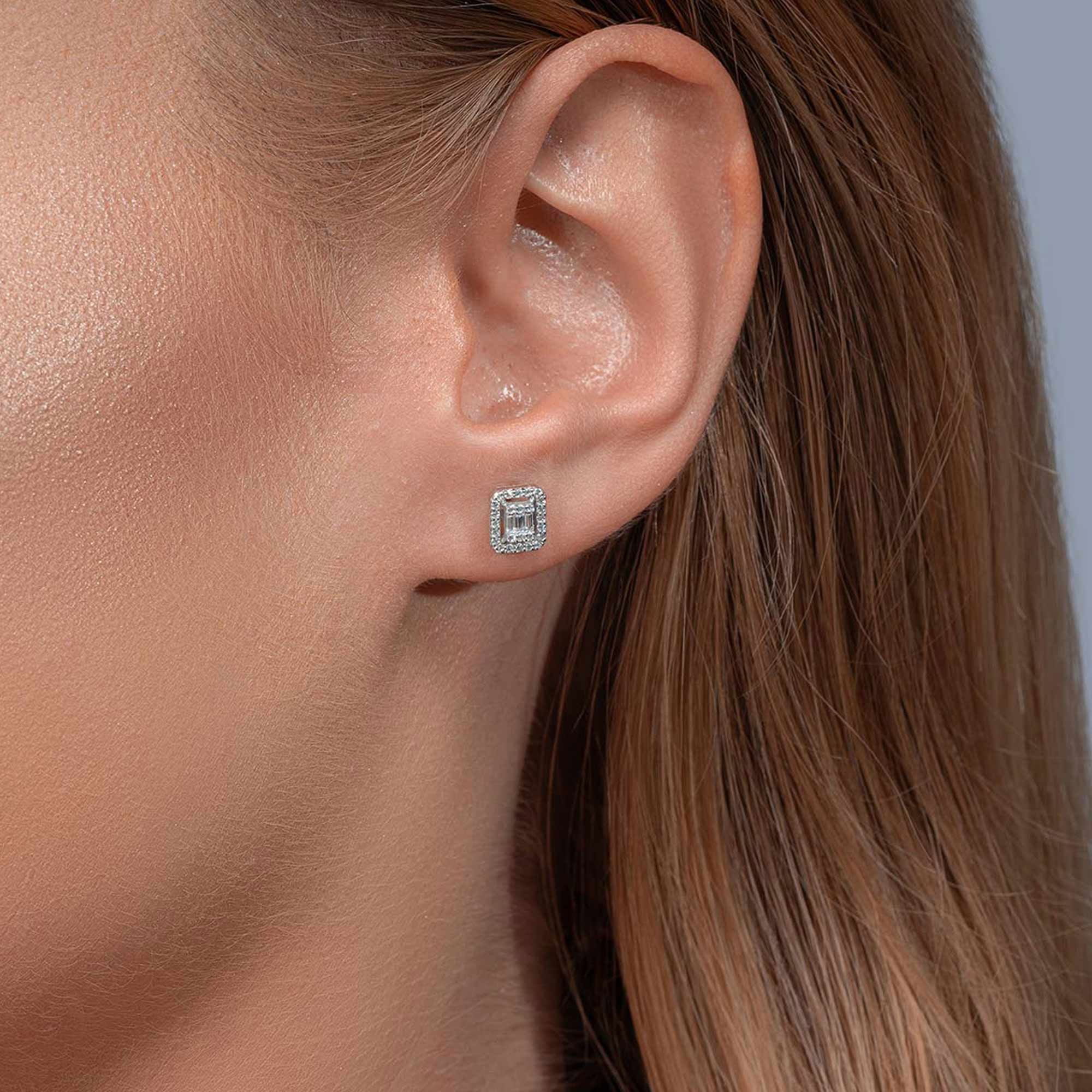 0,30 Karat Baget Pırlanta Küpe - Yaklaşık 1,48gr. 14 Ayar Beyaz Altın