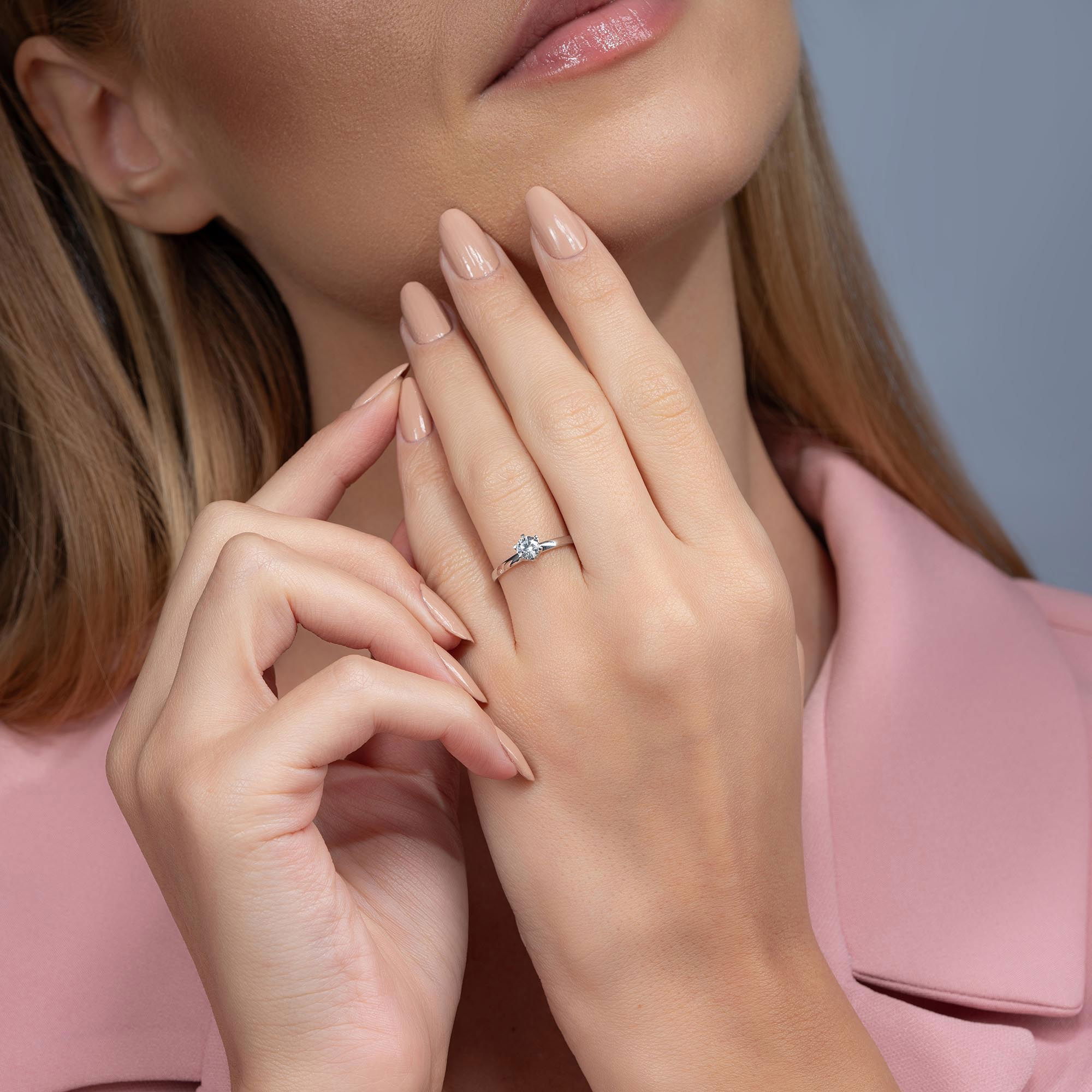 G Renk 0,30 Karat HRD Sertifikalı Tektaş Pırlanta Yüzük - Yaklaşık 1,80gr. 14 Ayar Beyaz Altın