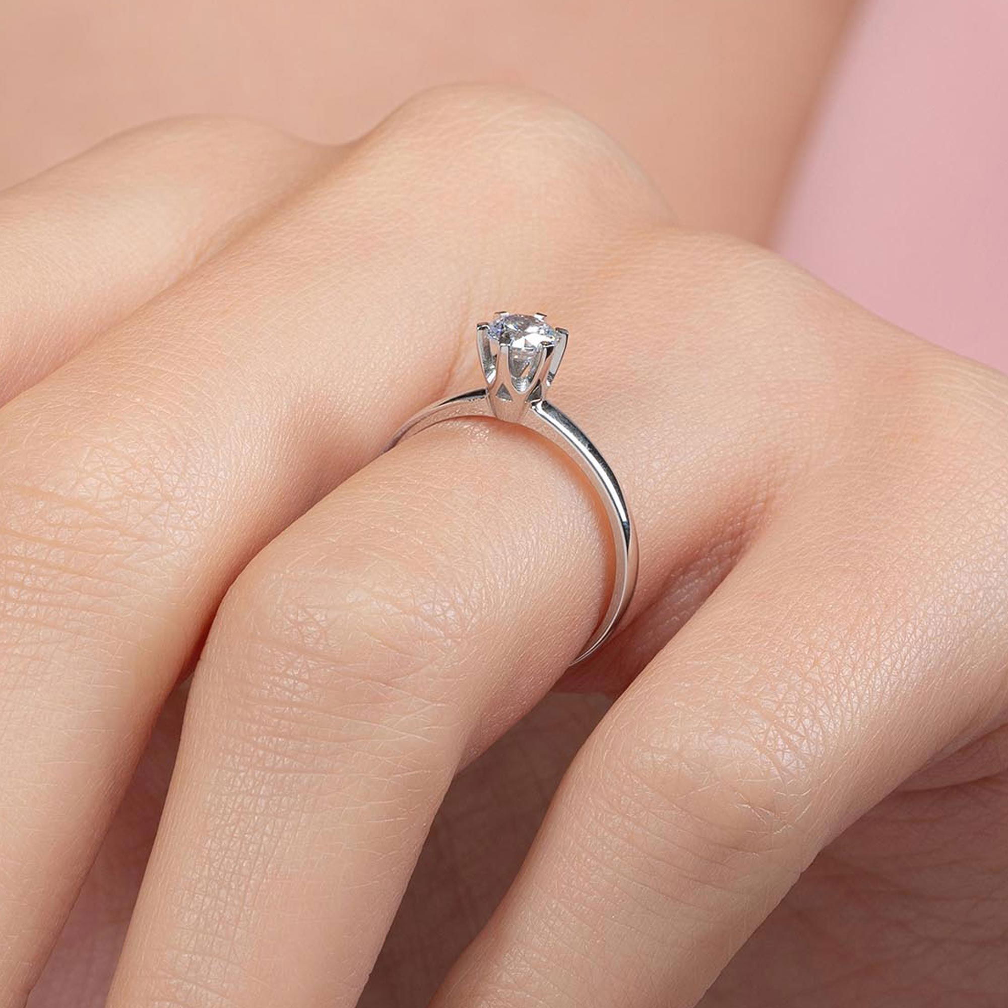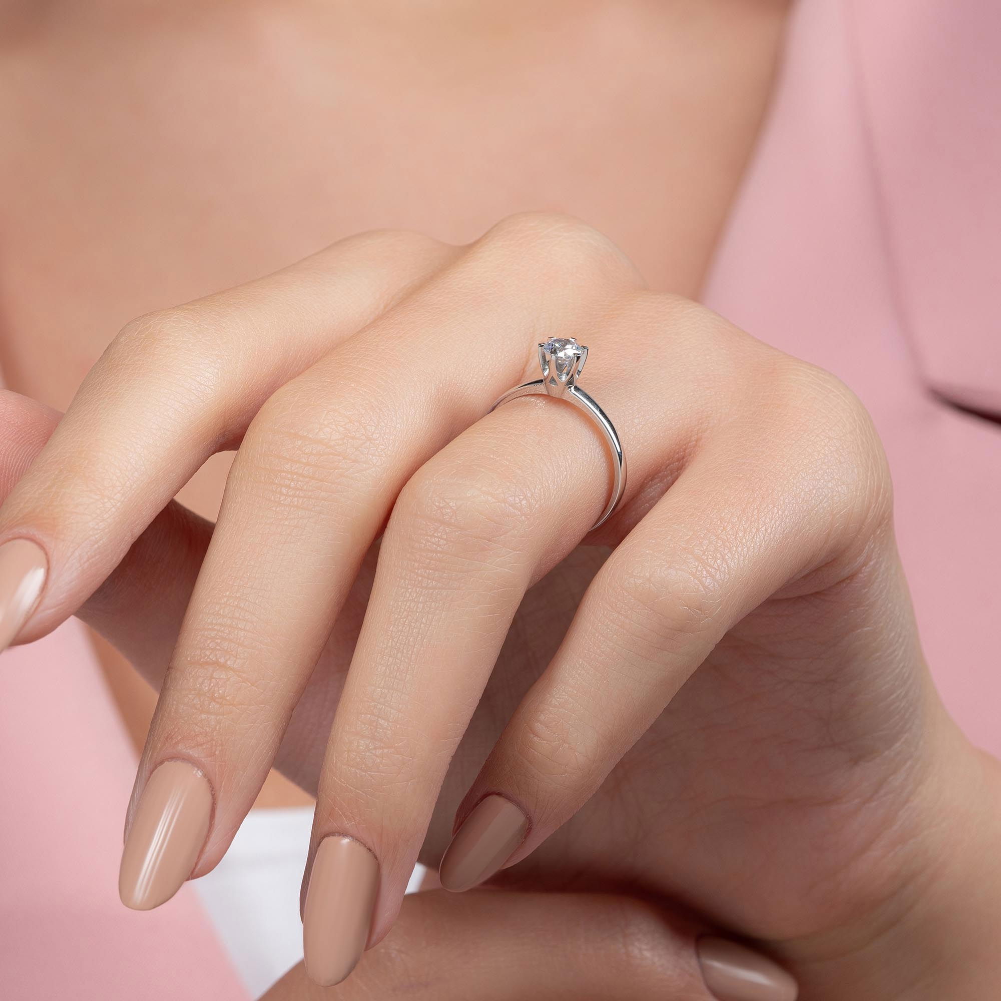 D Renk  0,30 Karat HRD Sertifikalı Tektaş Pırlanta Yüzük - Yaklaşık 1,80gr. 14 Ayar Beyaz Altın