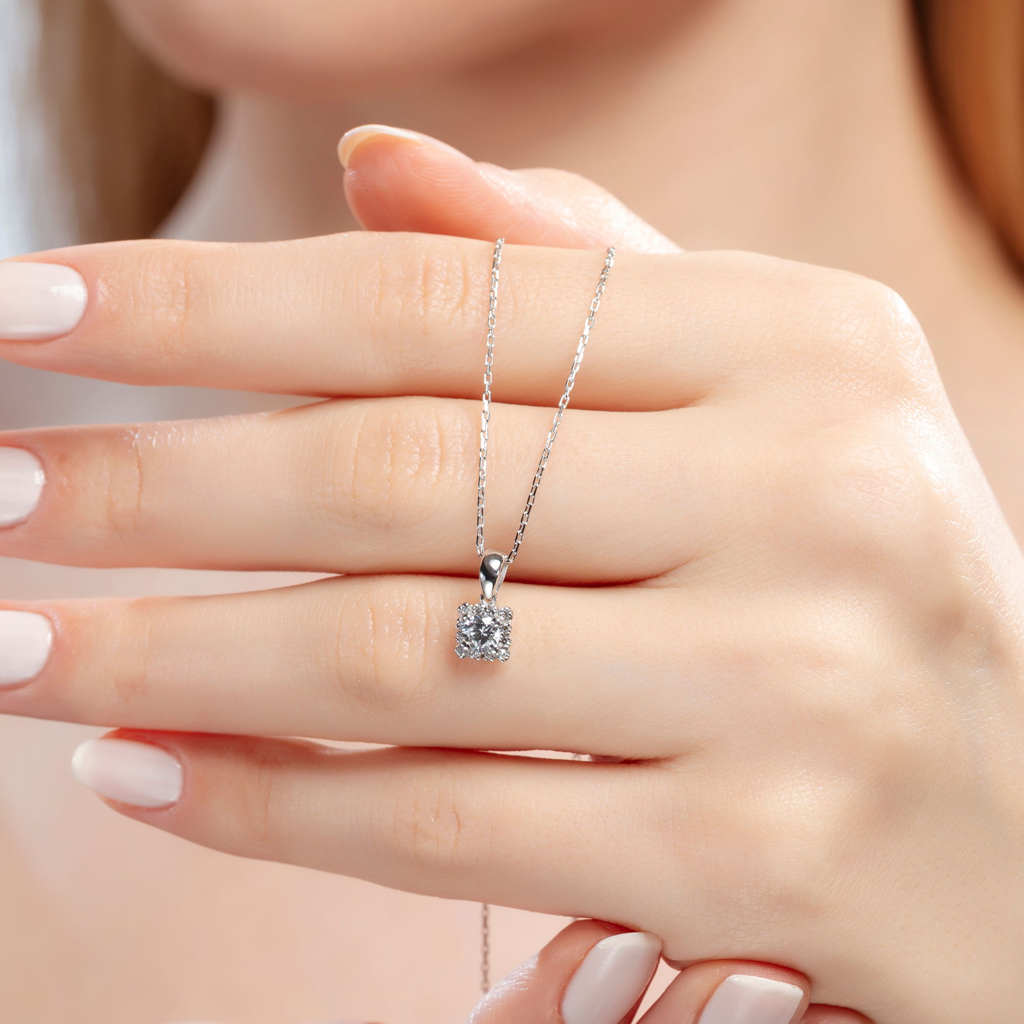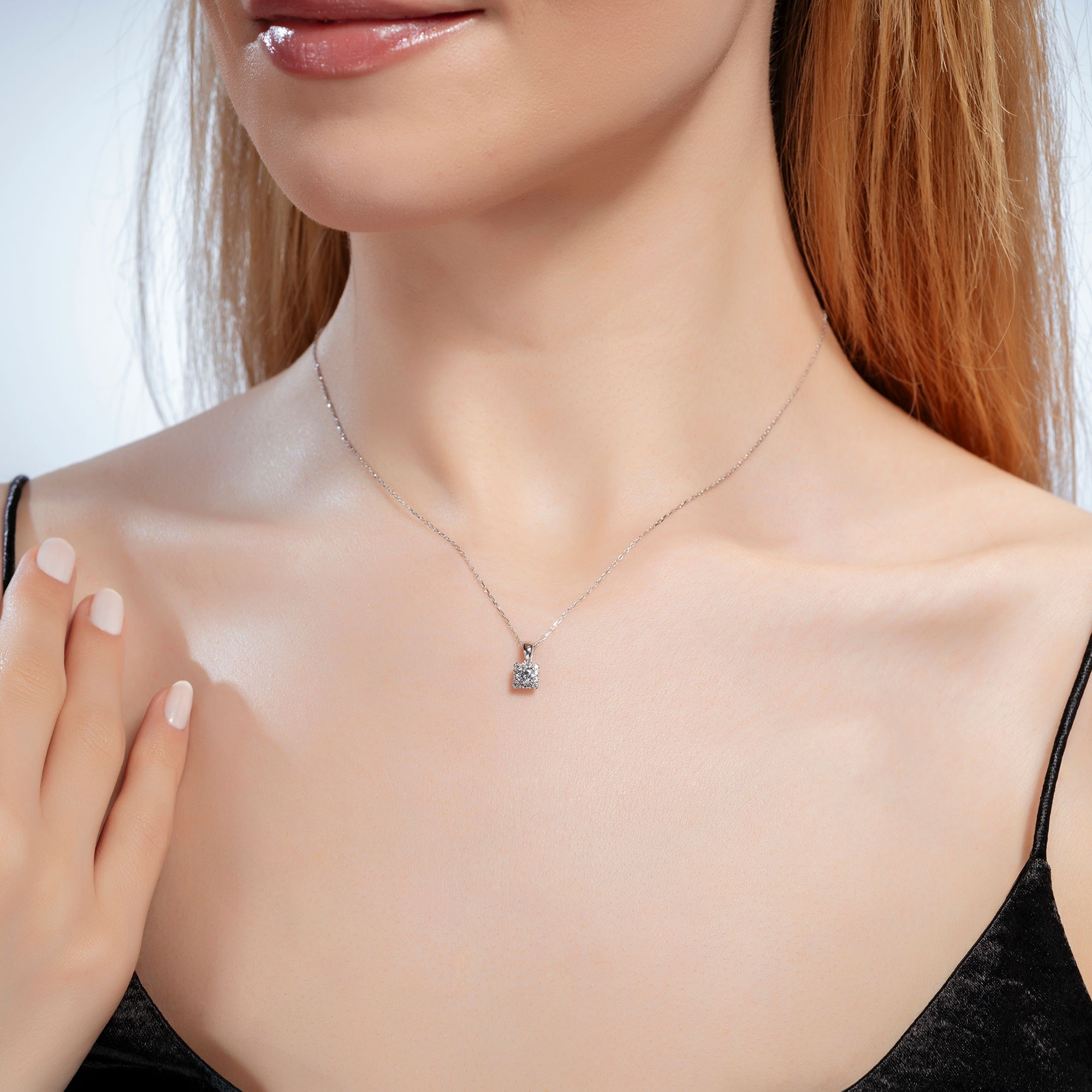 Üründe G renk SI berraklığında yuvarlak kesim pırlanta taşlar kullanılmaktadır. Parlaklığı ve netliğiyle dikkat çeken bu taşlar, zarif bir görünüm sunar. Pırlanta kolye, 42,5 cm standart zincir uzunluğu ile üretilmiştir.