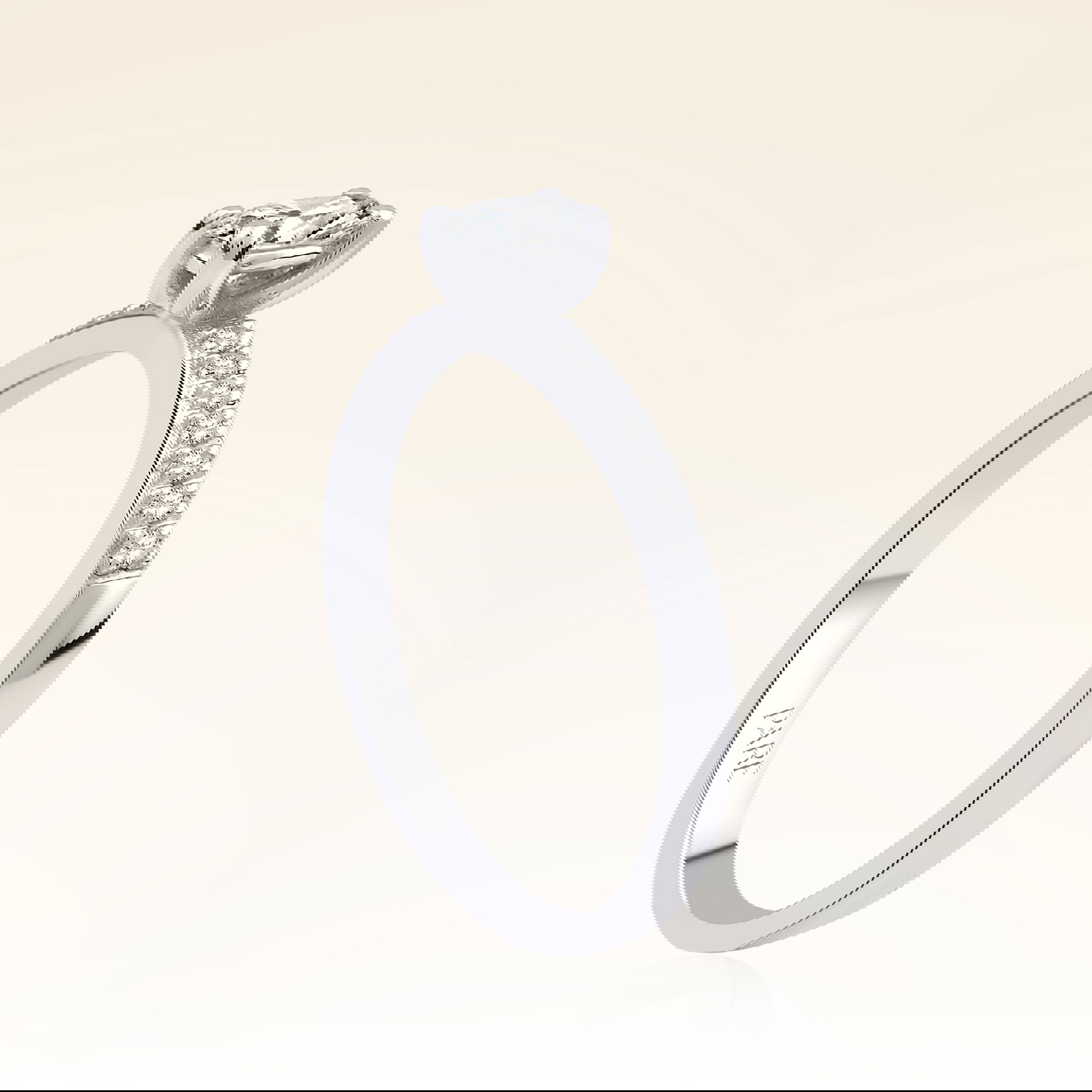 Üründe G renk SI berraklığında oval ve yuvarlak kesim pırlanta taşlar kullanılmaktadır. Parlaklığı ve netliğiyle dikkat çeken bu taşlar, zarif bir görünüm sunar. Altın ağırlığı, seçilen yüzük ölçüsüne göre farklılık gösterebilir.
