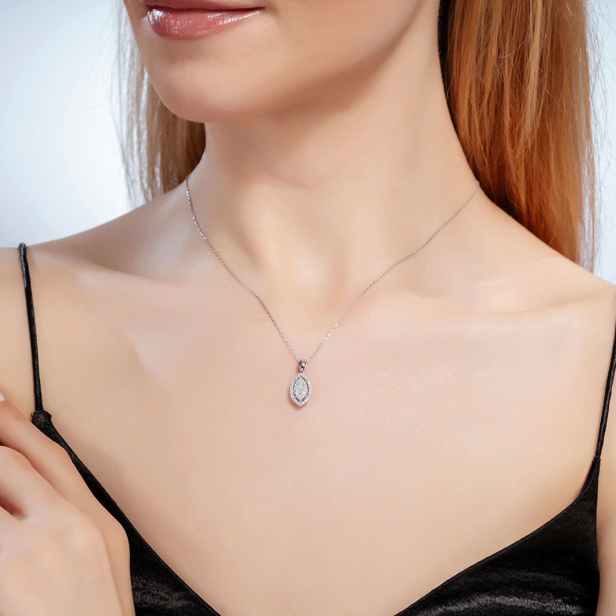 Üründe G renk SI berraklığında yuvarlak kesim pırlanta taşlar kullanılmaktadır. Parlaklığı ve netliğiyle dikkat çeken bu taşlar, zarif bir görünüm sunar. Pırlanta kolye, 42,5 cm standart zincir uzunluğu ile üretilmiştir.