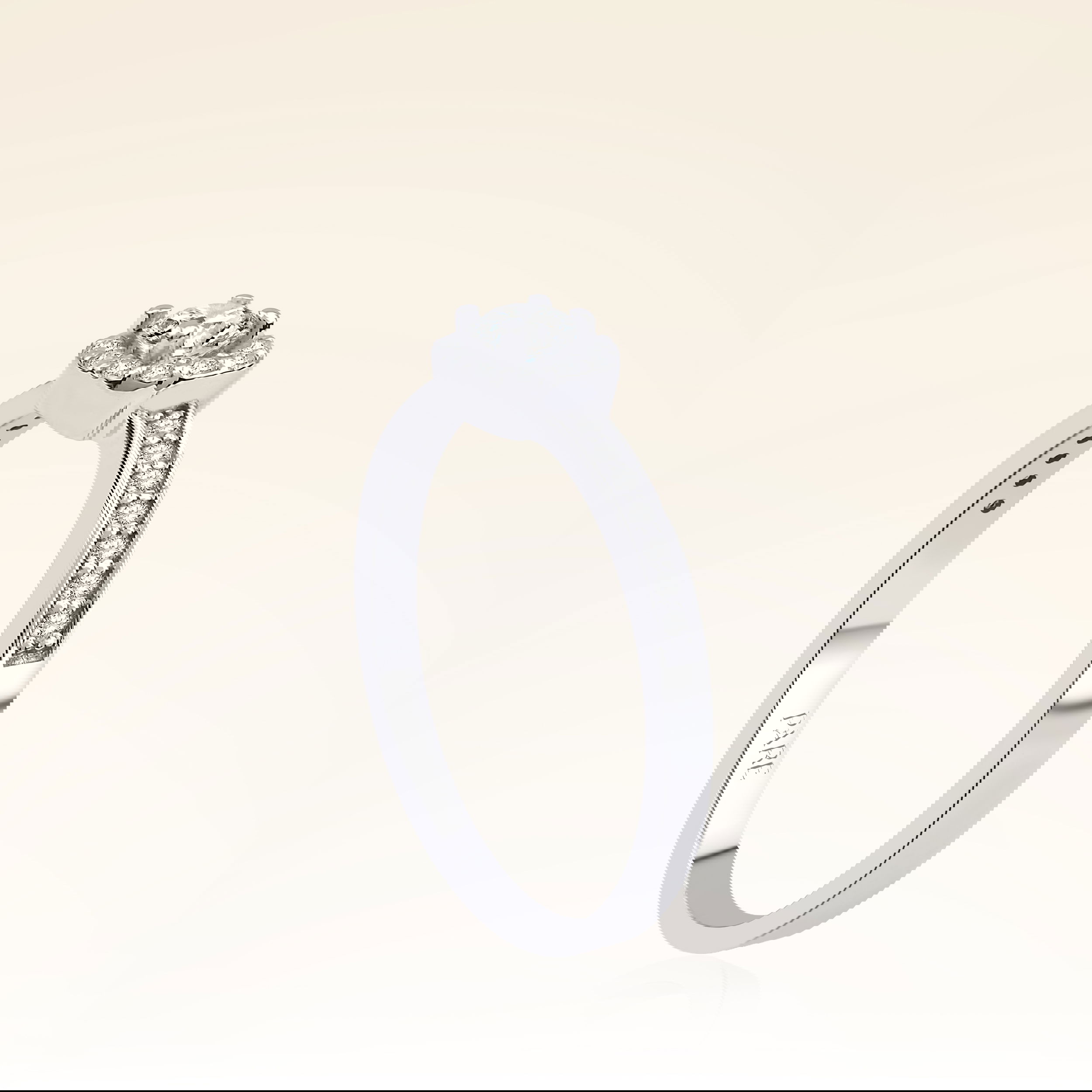 Üründe G renk SI berraklığında yuvarlak kesim pırlanta taşlar kullanılmaktadır. Parlaklığı ve netliğiyle dikkat çeken bu taşlar, zarif bir görünüm sunar. Altın ağırlığı, seçilen yüzük ölçüsüne göre farklılık gösterebilir.