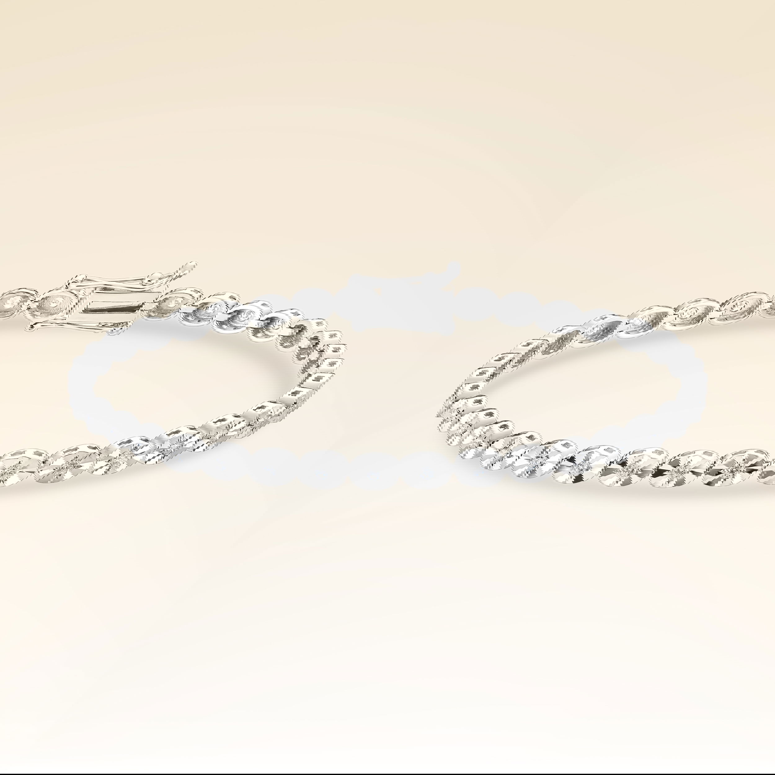 0,37 Karat Efektli Suyolu Pırlanta Bileklik - Yaklaşık 6,31gr. 14 Ayar Beyaz Altın