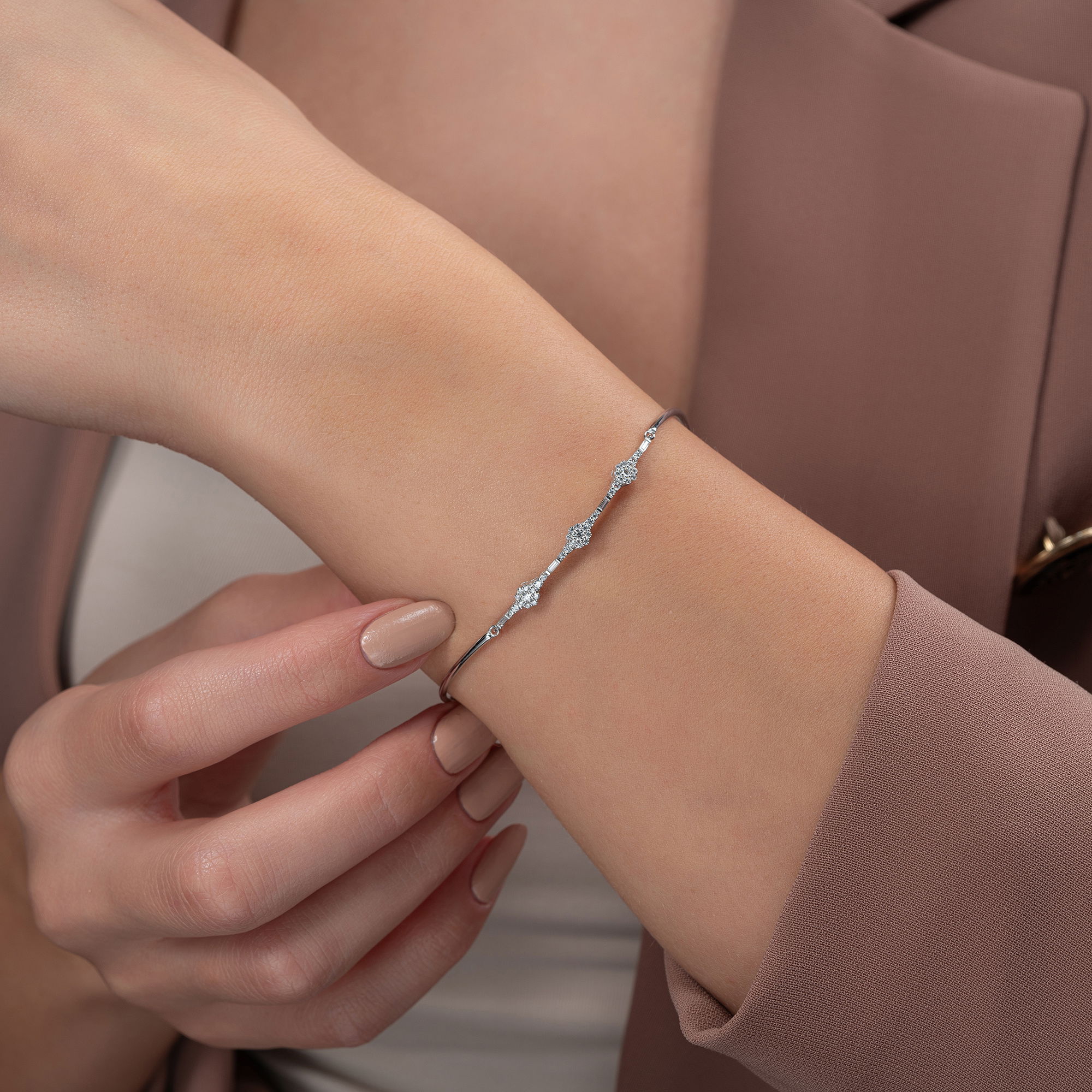 0,38 Karat Baget Pırlanta Bileklik - Yaklaşık 4,18gr. 14 Ayar Beyaz Altın