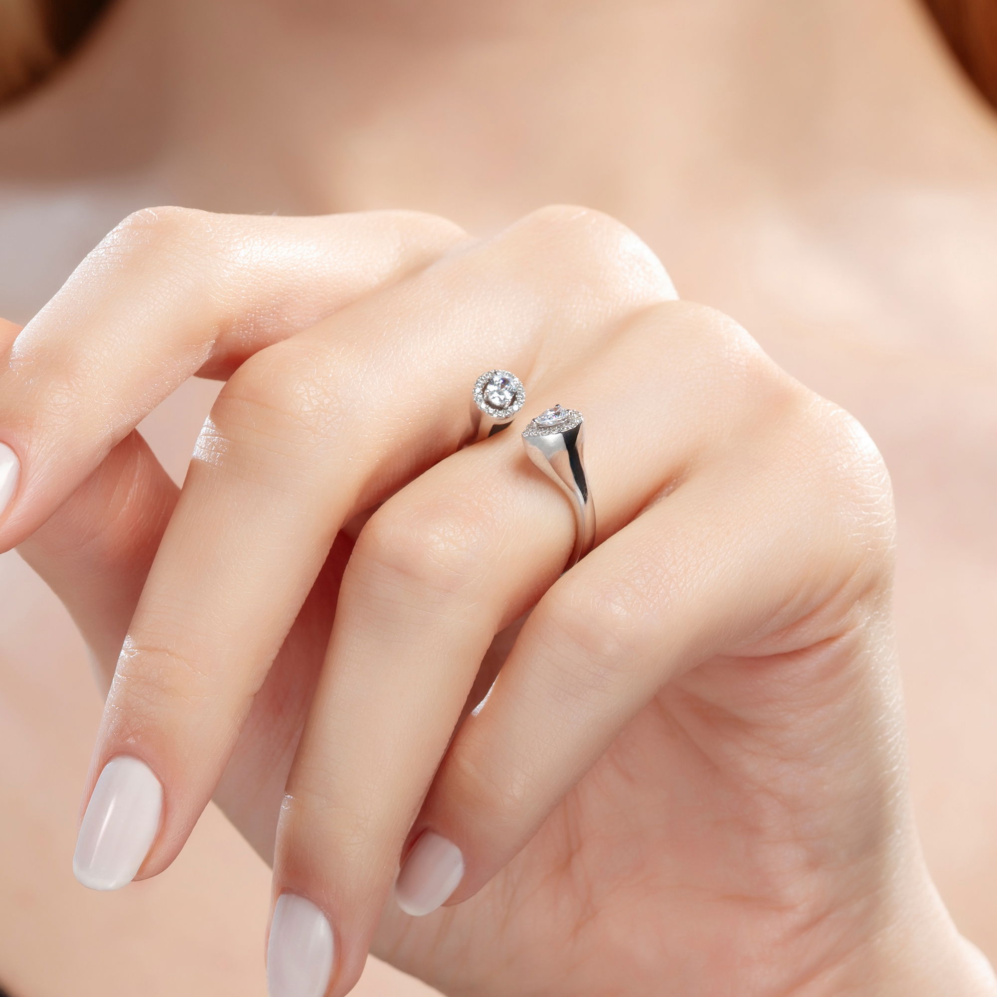 Üründe G renk SI berraklığında oval, damla ve yuvarlak kesim pırlanta taşlar kullanılmaktadır. Parlaklığı ve netliğiyle dikkat çeken bu taşlar, zarif bir görünüm sunar. Altın ağırlığı, seçilen yüzük ölçüsüne göre farklılık gösterebilir.