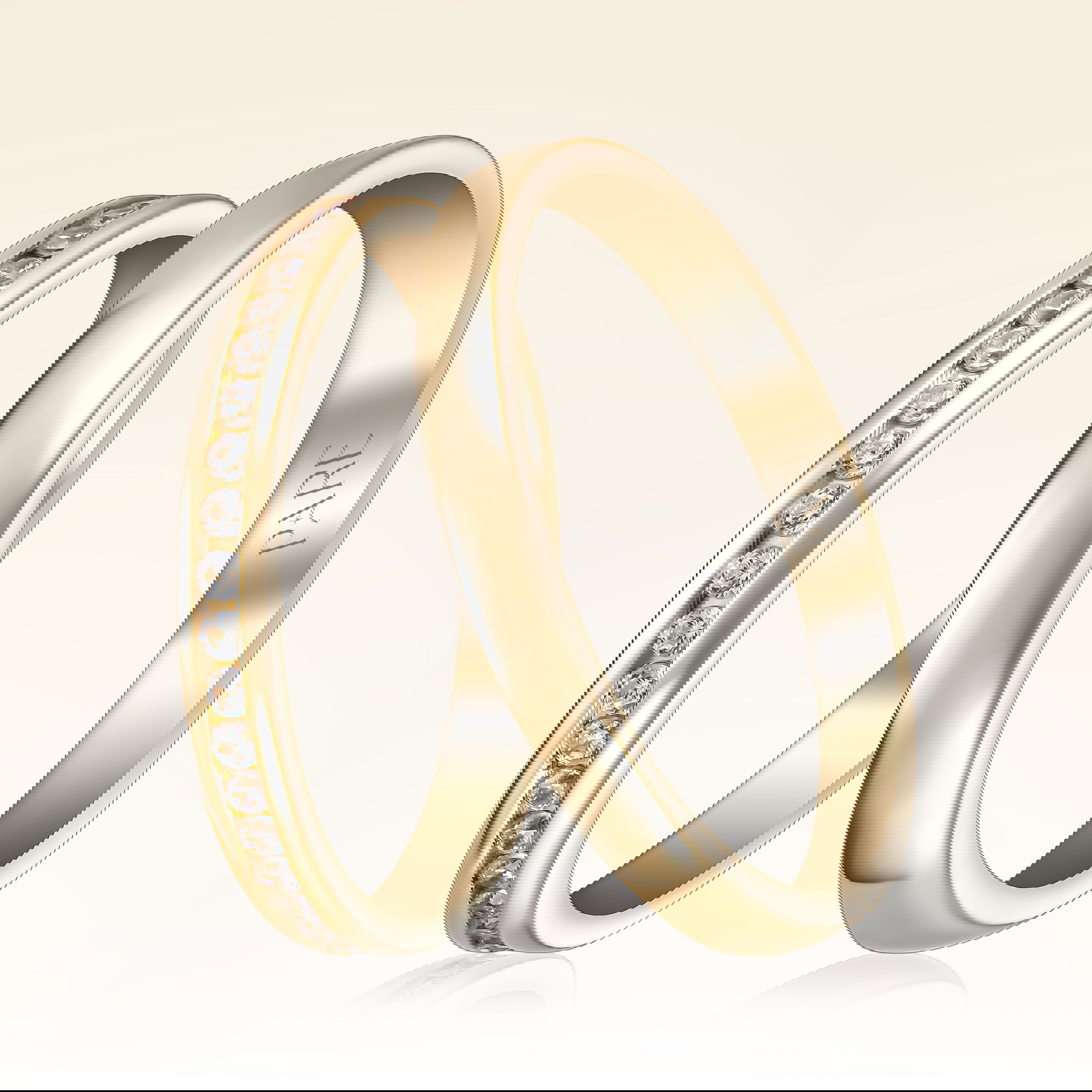 0,40 Karat Pırlantalı Tamtur Çift Alyans - Yaklaşık 4,66gr. 14 Ayar Sarı Altın