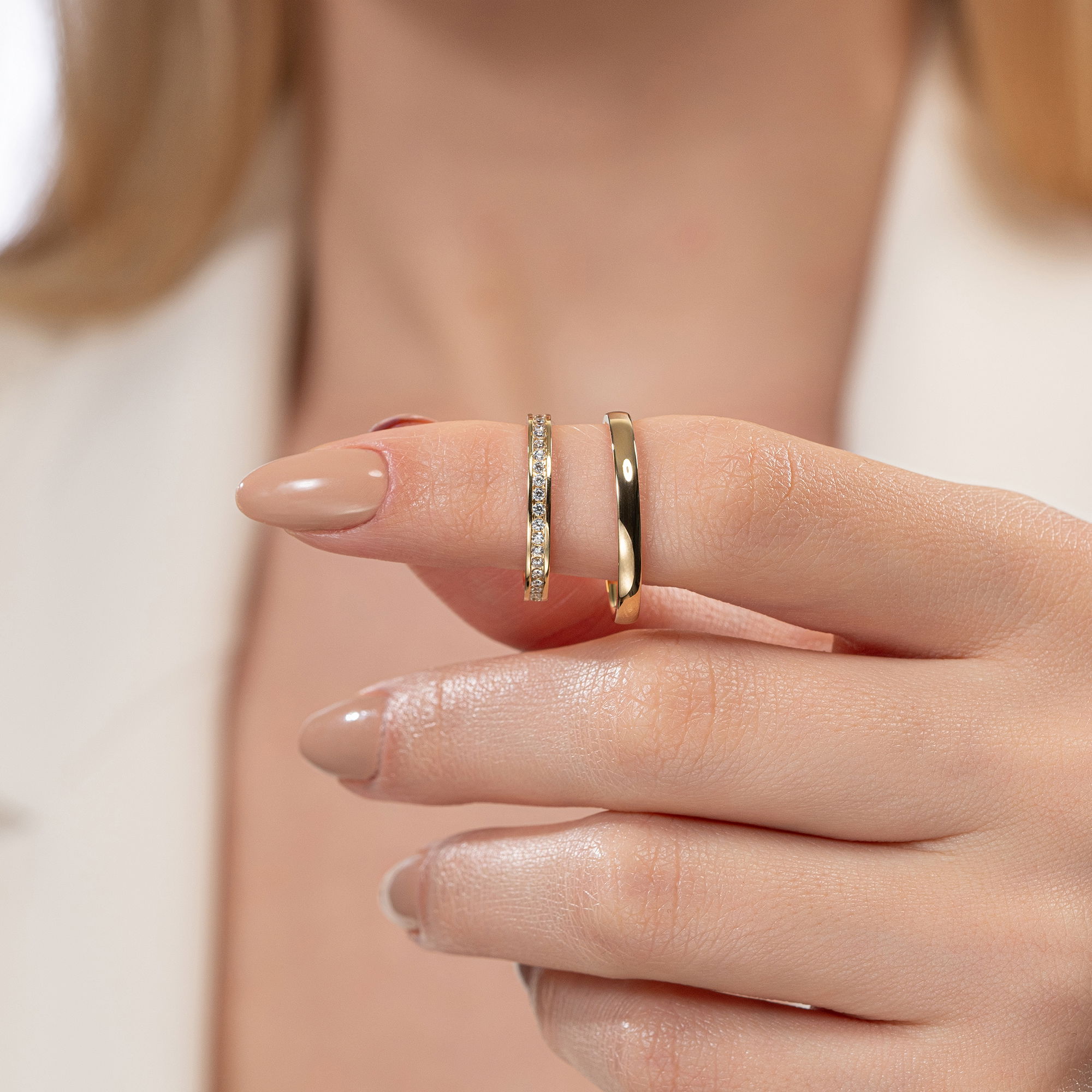 0,40 Karat Pırlantalı Tamtur Kadın Alyans - Yaklaşık 1,99gr. 14 Ayar Sarı Altın