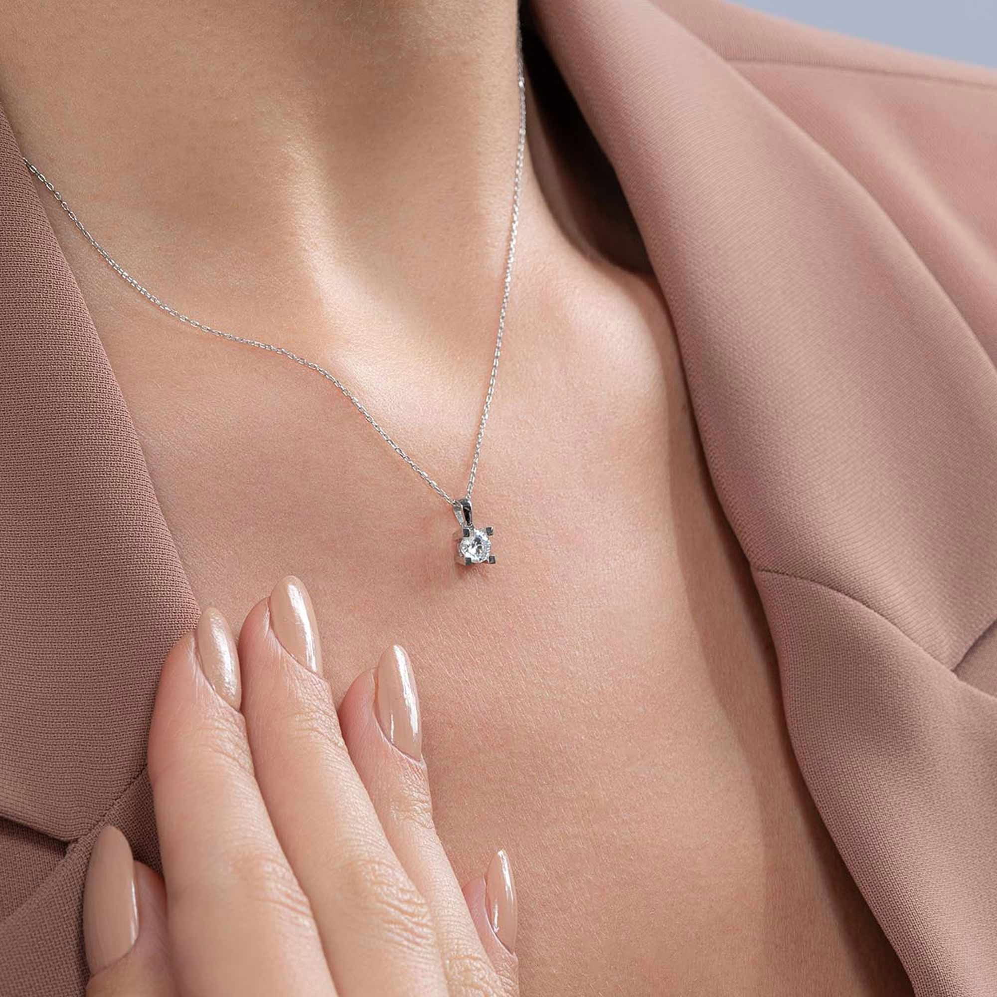 0,40 Karat Tektaş Pırlanta Kolye - Yaklaşık 1,32gr. 14 Ayar Beyaz Altın