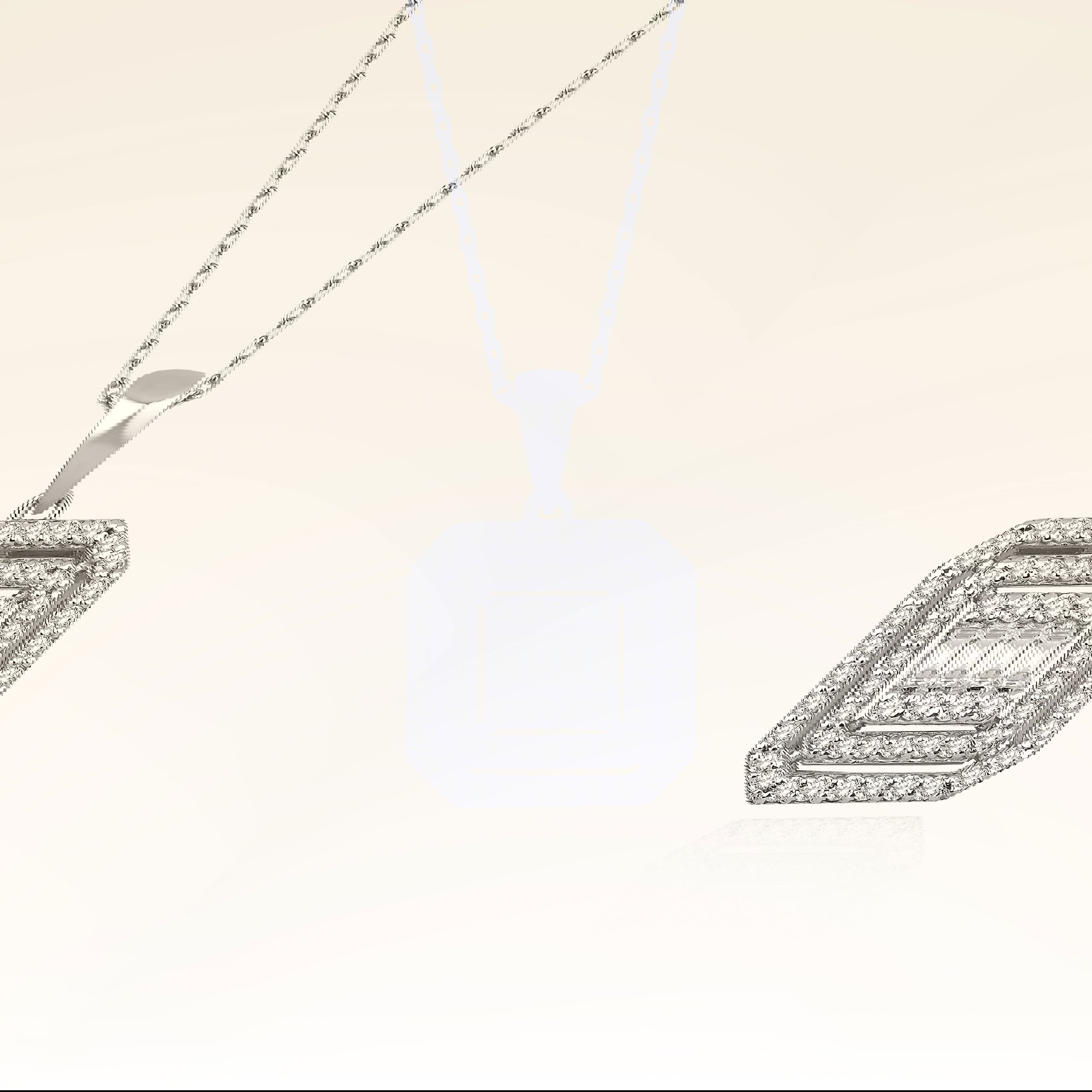Üründe G renk SI berraklığında baget ve yuvarlak kesim pırlanta taşlar kullanılmaktadır. Parlaklığı ve netliğiyle dikkat çeken bu taşlar, zarif bir görünüm sunar. Pırlanta kolye, 42,5 cm standart zincir uzunluğu ile üretilmiştir.