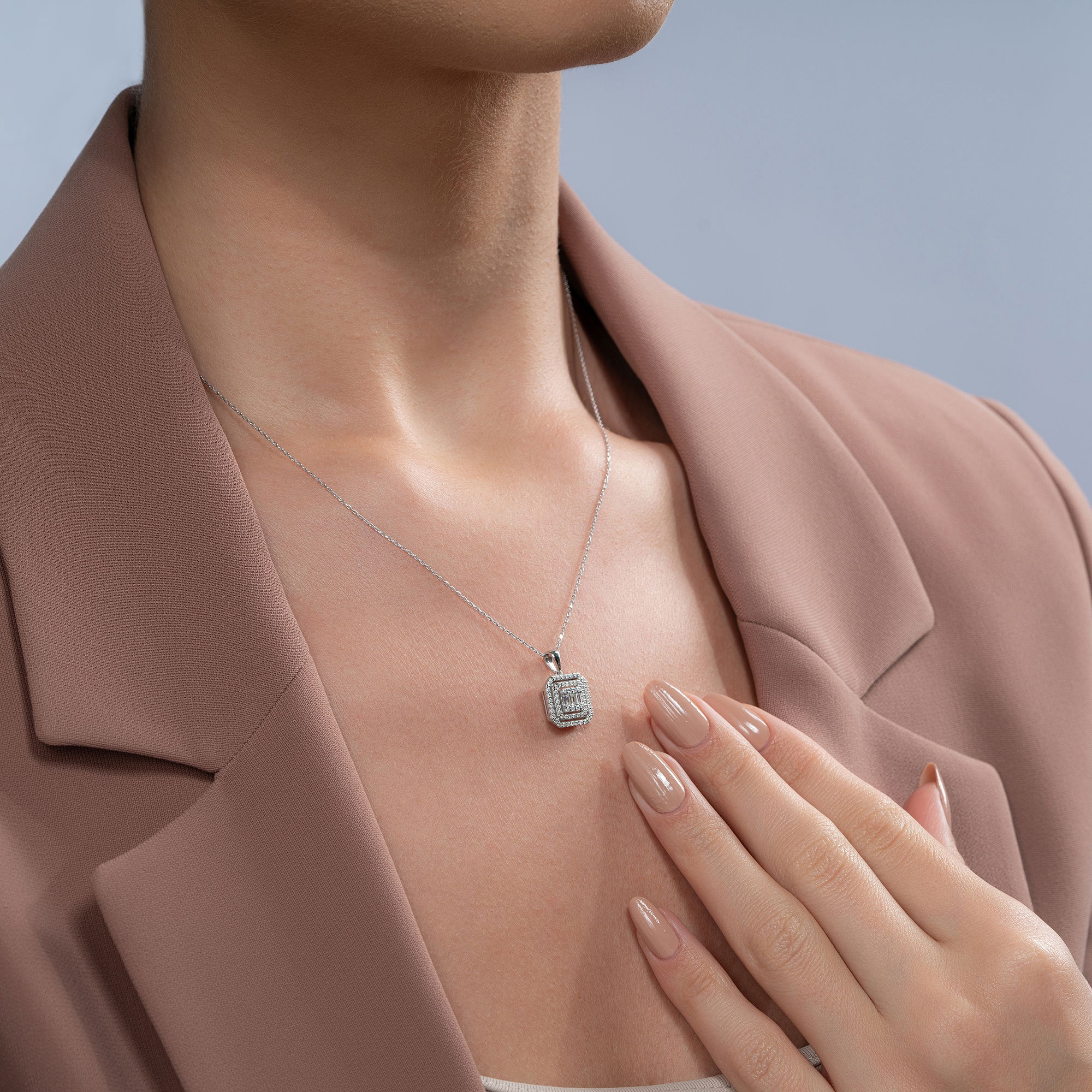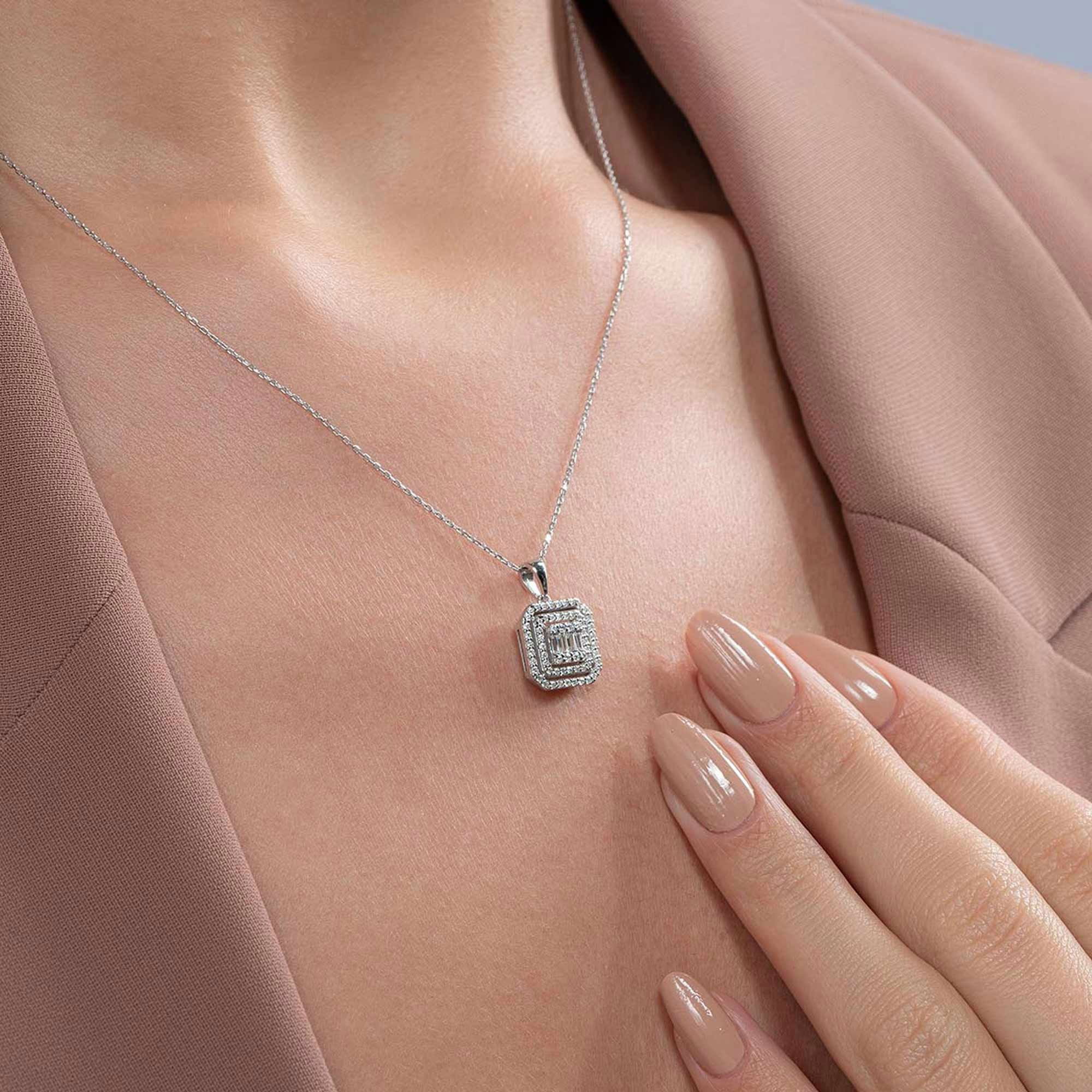 0,43 Karat Baget Pırlanta Kolye - Yaklaşık 2,80gr. 14 Ayar Beyaz Altın