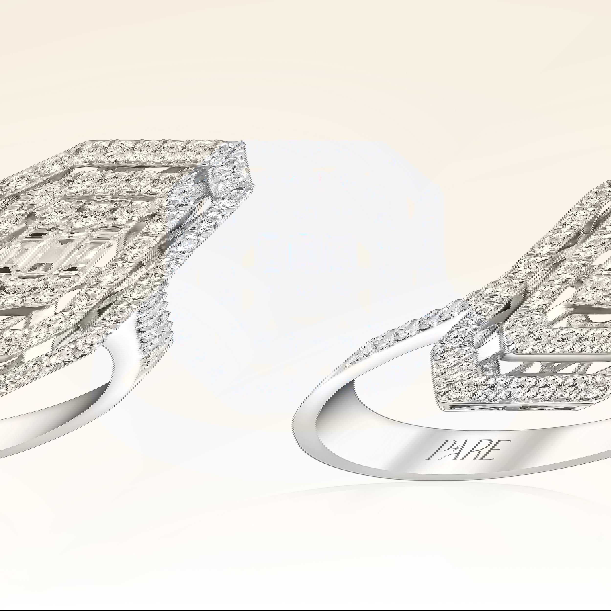 Üründe G renk SI berraklığında baget ve yuvarlak kesim pırlanta taşlar kullanılmaktadır. Parlaklığı ve netliğiyle dikkat çeken bu taşlar, zarif bir görünüm sunar. Altın ağırlığı, seçilen yüzük ölçüsüne göre farklılık gösterebilir.