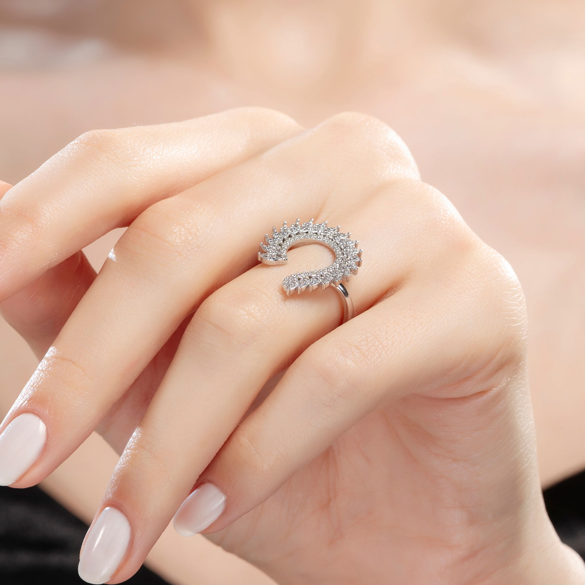 Gelince Haber Ver0,45 Karat Fantezi Pırlanta Yüzük - Yaklaşık 3,67gr. 14 Ayar Beyaz Altın