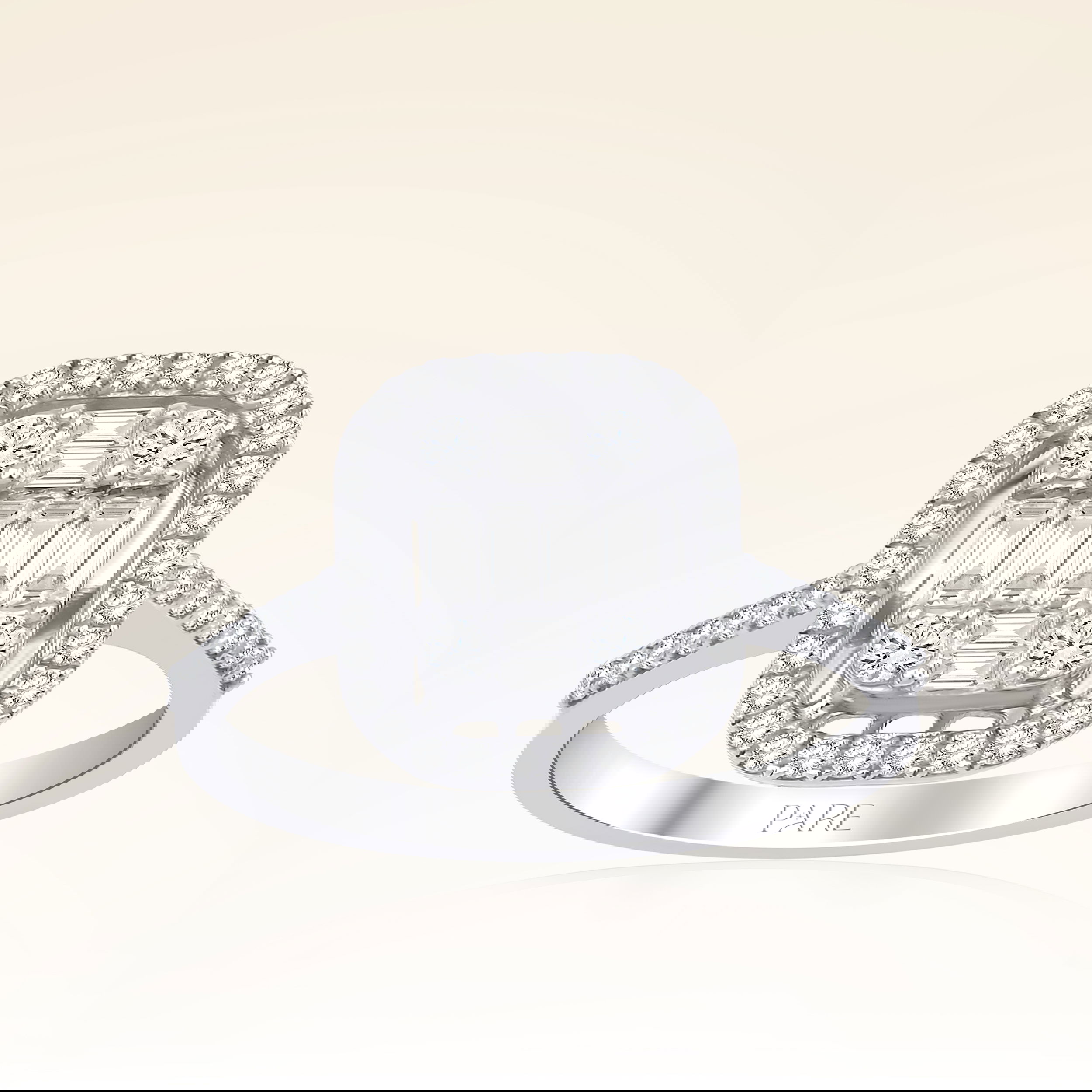 Üründe G renk SI berraklığında baget ve yuvarlak kesim pırlanta taşlar kullanılmaktadır. Parlaklığı ve netliğiyle dikkat çeken bu taşlar, zarif bir görünüm sunar. Altın ağırlığı, seçilen yüzük ölçüsüne göre farklılık gösterebilir.