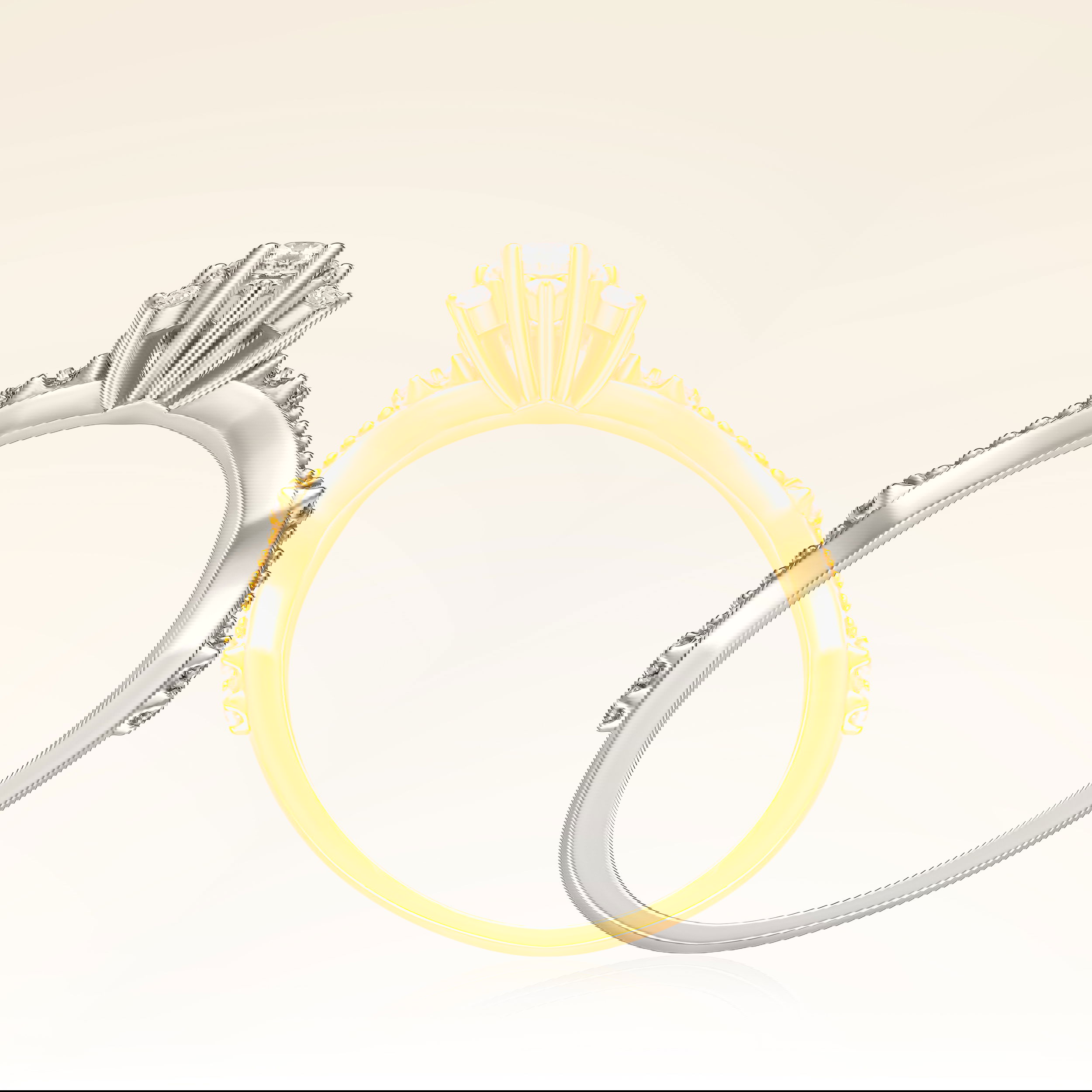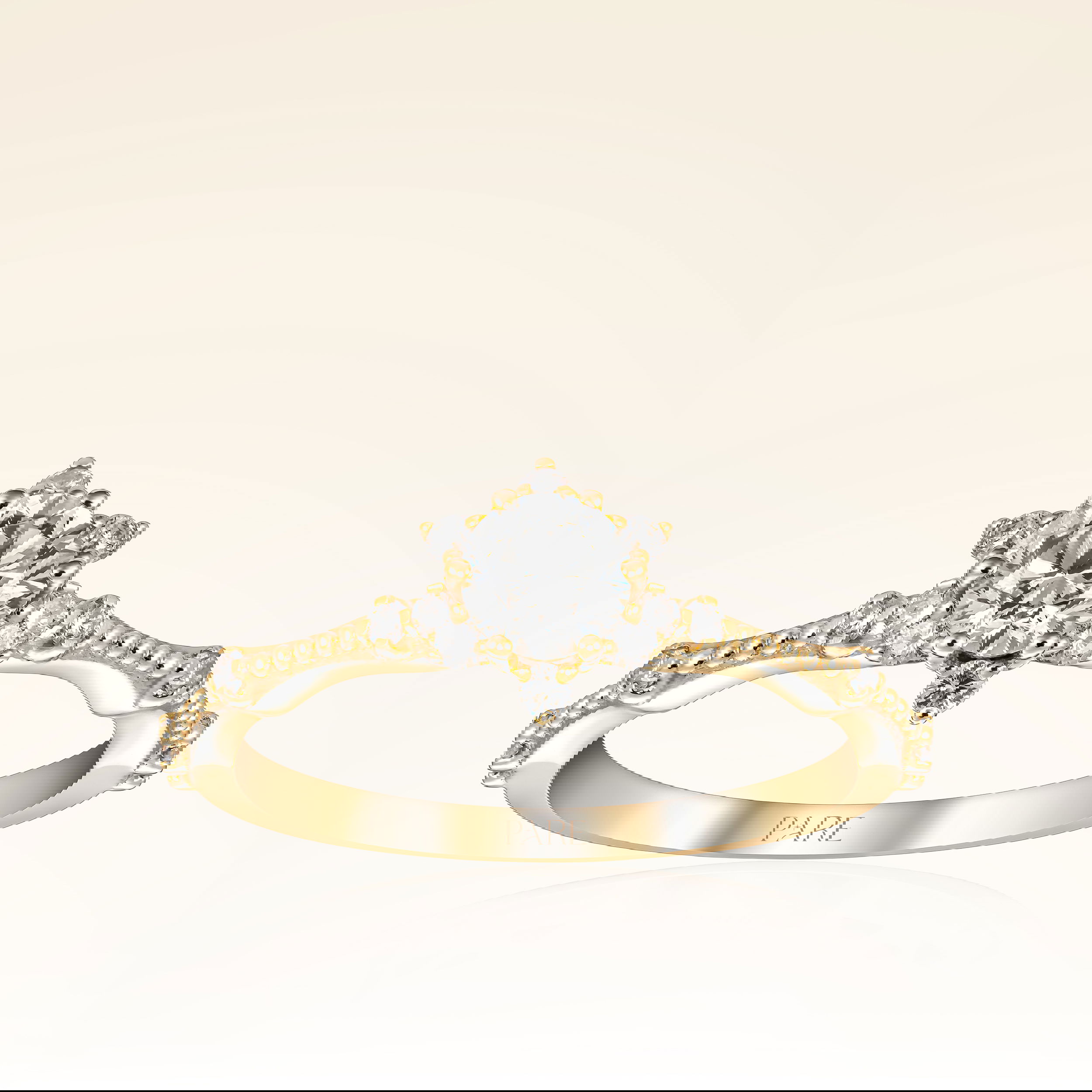 Üründe G renk SI berraklığında yuvarlak kesim pırlanta taşlar kullanılmaktadır. Parlaklığı ve netliğiyle dikkat çeken bu taşlar, zarif bir görünüm sunar. Altın ağırlığı, seçilen yüzük ölçüsüne göre farklılık gösterebilir.