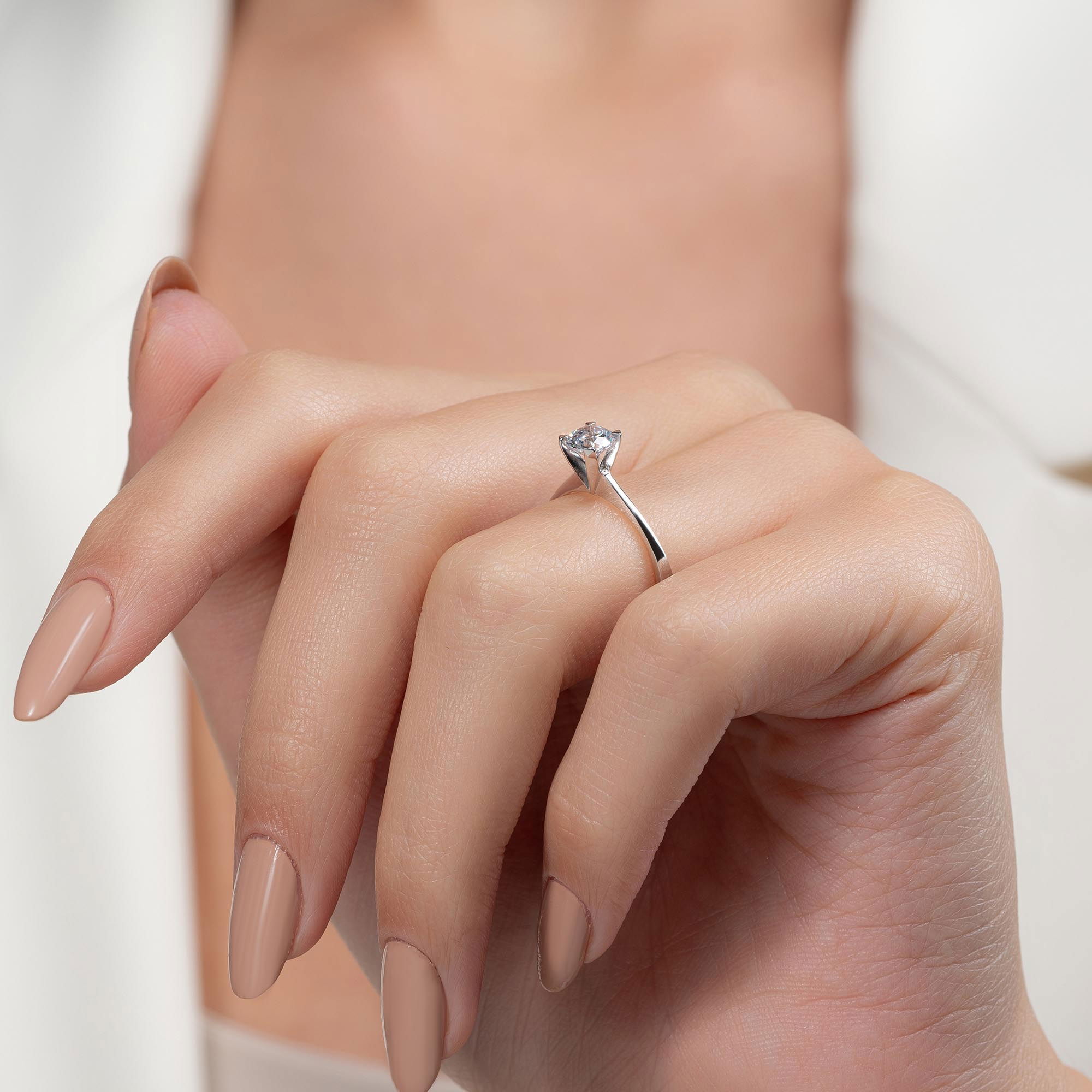 F Renk 0,60 Karat HRD Sertifikalı Tektaş Pırlanta Yüzük - Yaklaşık 2,14gr. 14 Ayar Beyaz Altın
