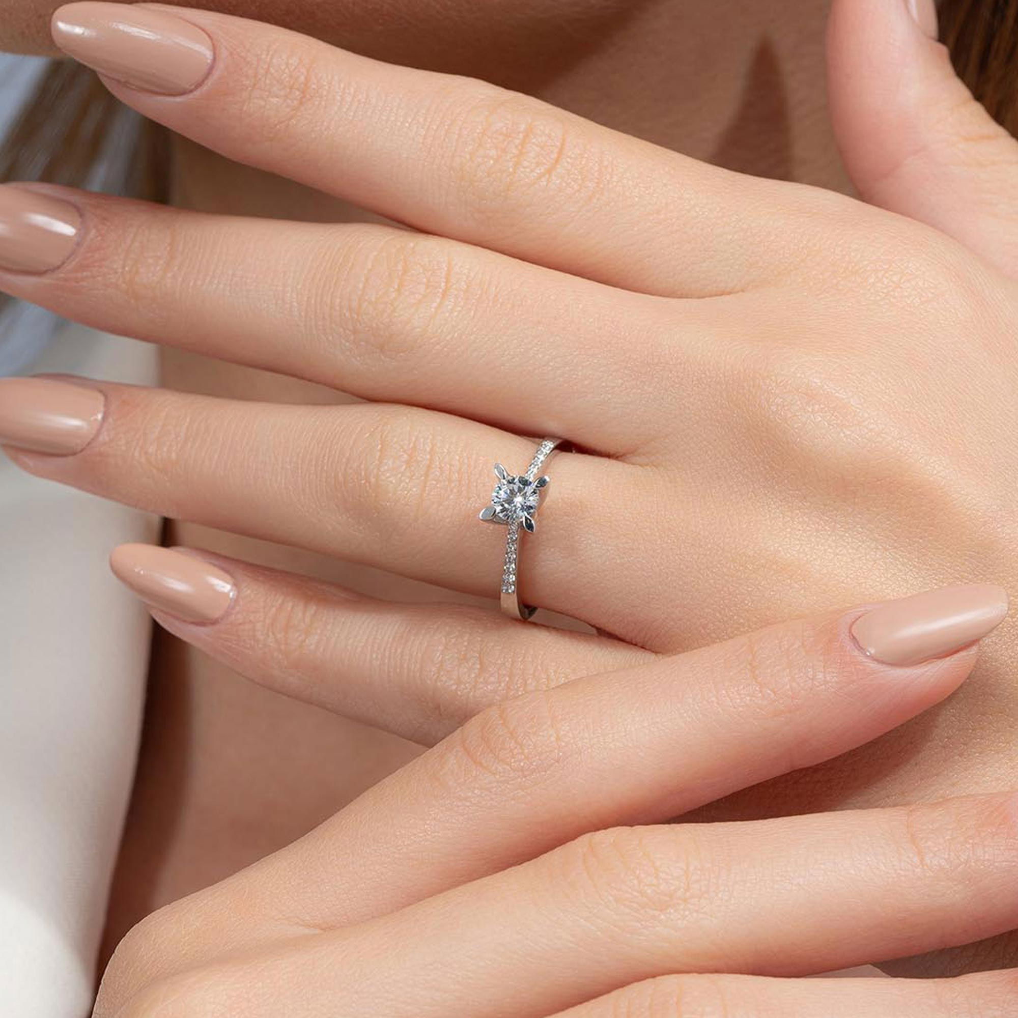 Gelince Haber VerÜründe G renk SI berraklığında yuvarlak kesim pırlanta taşlar kullanılmaktadır. Parlaklığı ve netliğiyle dikkat çeken bu taşlar, zarif bir görünüm sunar. Altın ağırlığı, seçilen yüzük ölçüsüne göre farklılık gösterebilir.