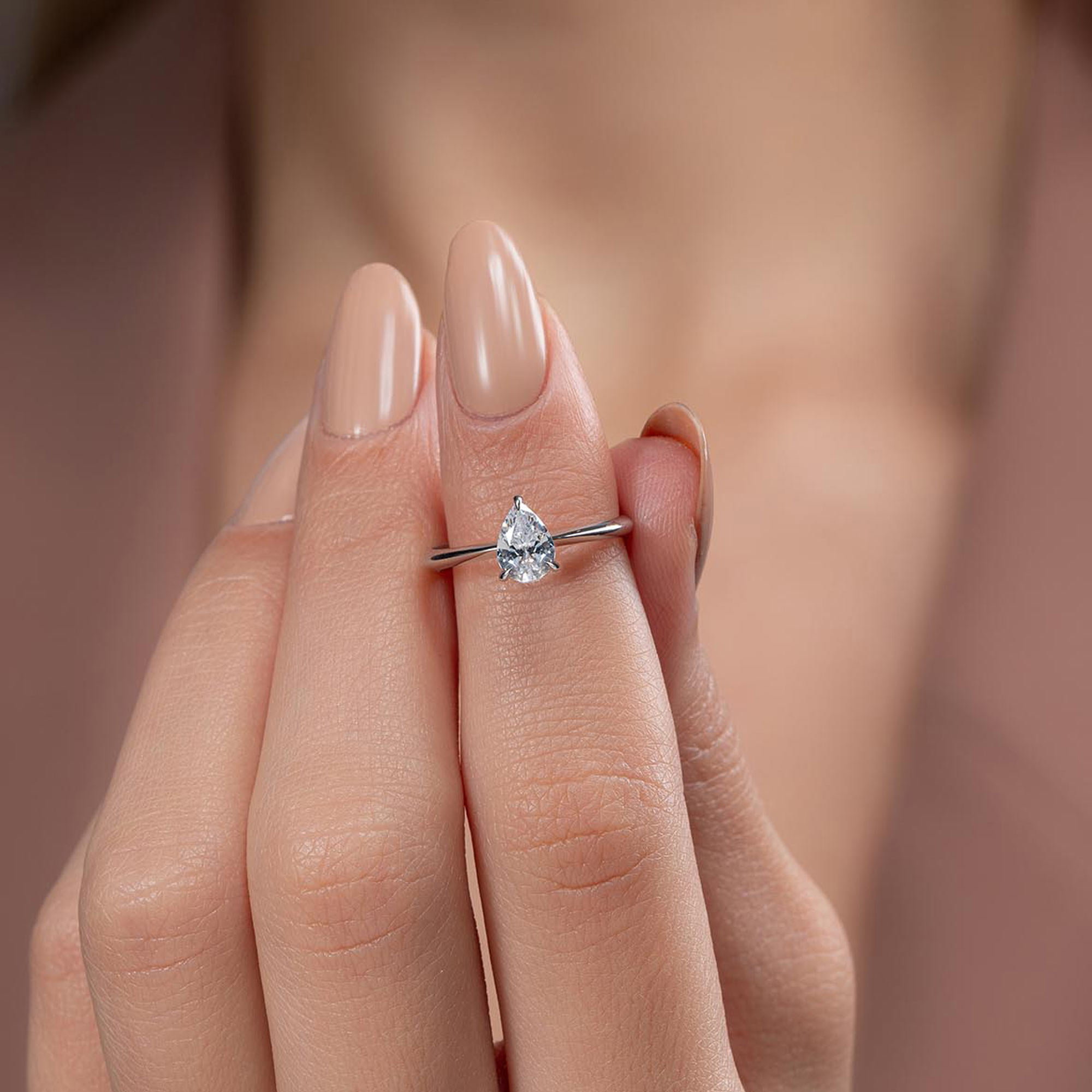 Üründe G renk SI berraklığında damla kesim pırlanta taşlar kullanılmaktadır. Parlaklığı ve netliğiyle dikkat çeken bu taşlar, zarif bir görünüm sunar. Altın ağırlığı, seçilen yüzük ölçüsüne göre farklılık gösterebilir.