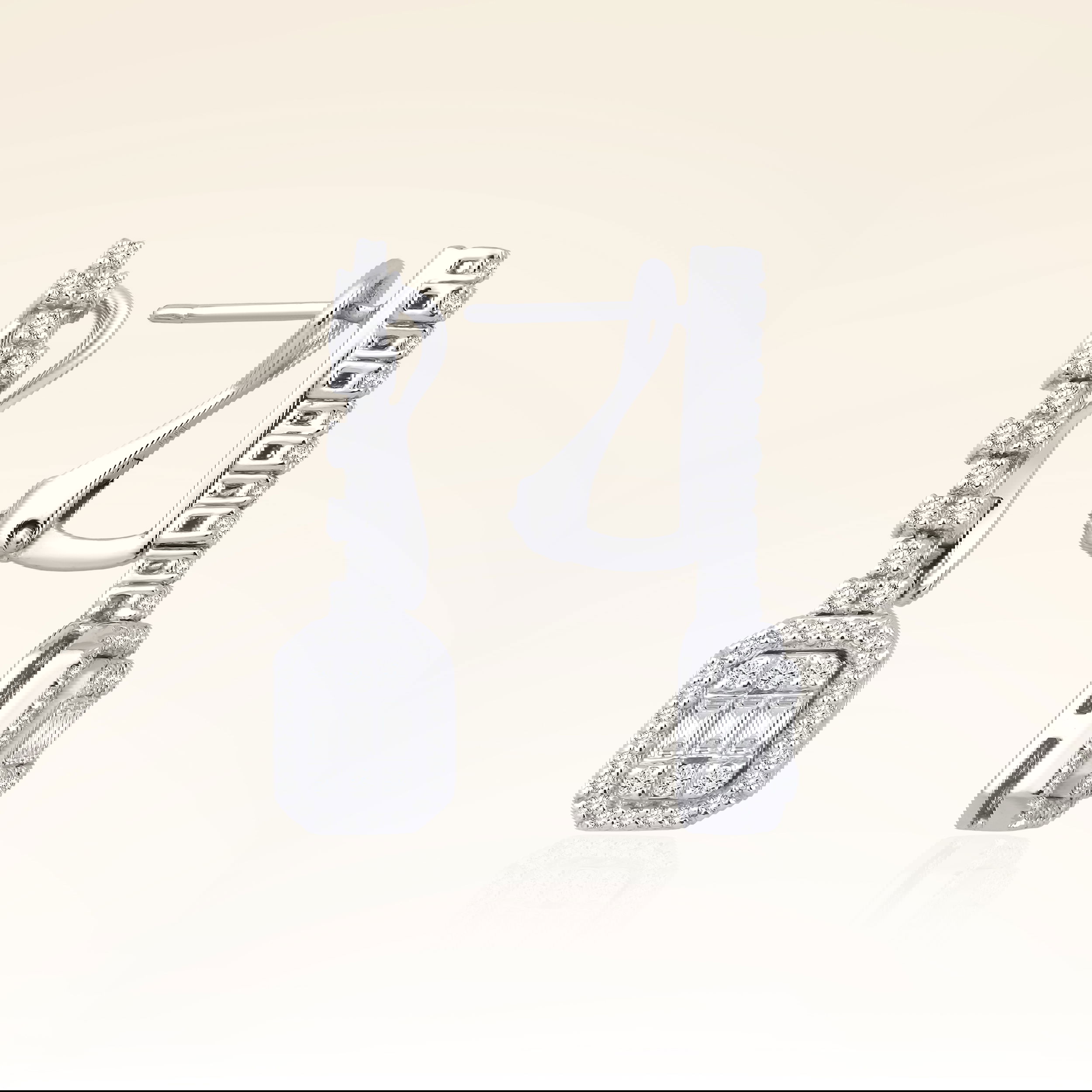 0,61 Karat Pırlantalı Baget Küpe - Yaklaşık 4,72gr. 14 Ayar Beyaz Altın
