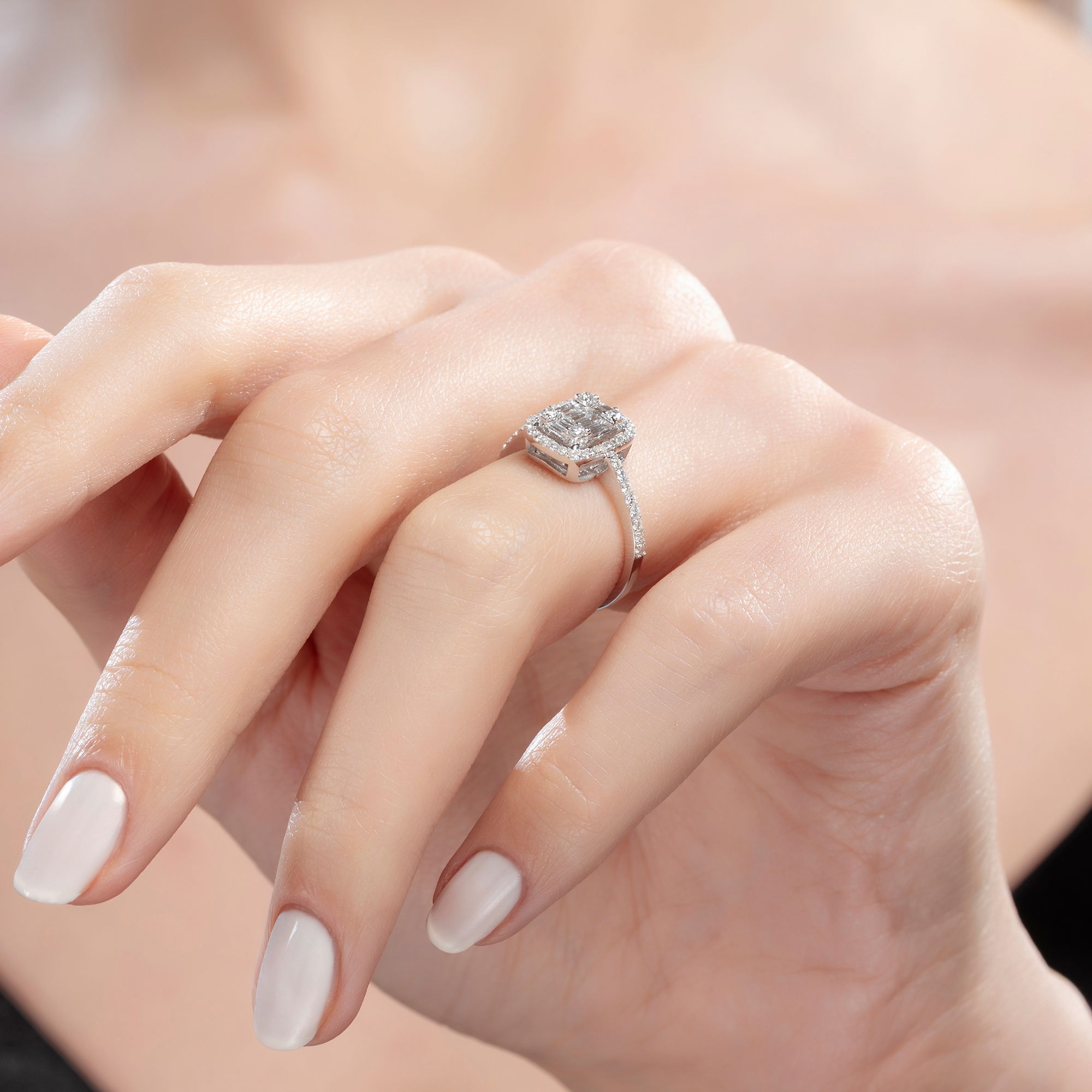 Gelince Haber VerÜründe G renk SI berraklığında baget ve yuvarlak kesim pırlanta taşlar kullanılmaktadır. Parlaklığı ve netliğiyle dikkat çeken bu taşlar, zarif bir görünüm sunar. Altın ağırlığı, seçilen yüzük ölçüsüne göre farklılık gösterebilir.