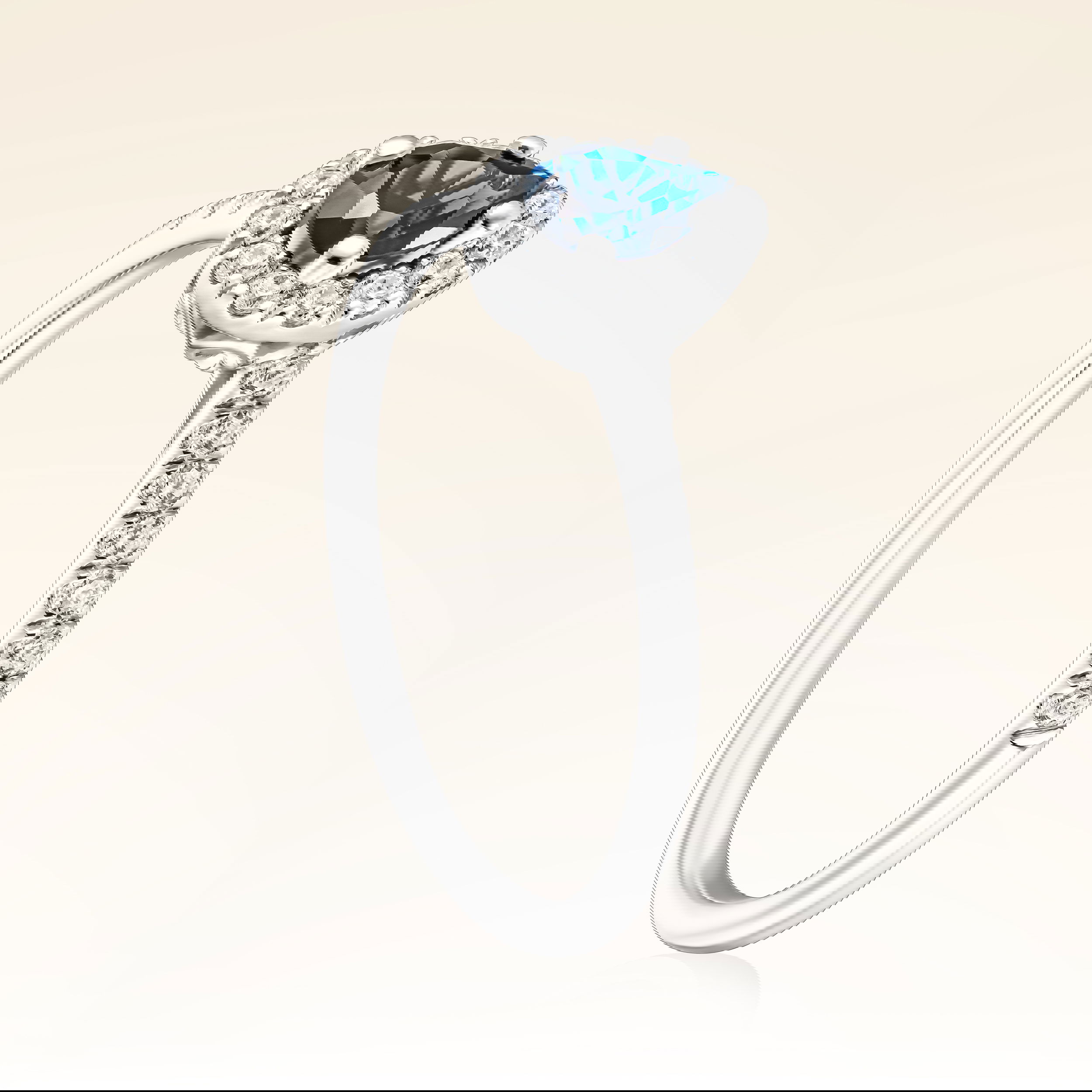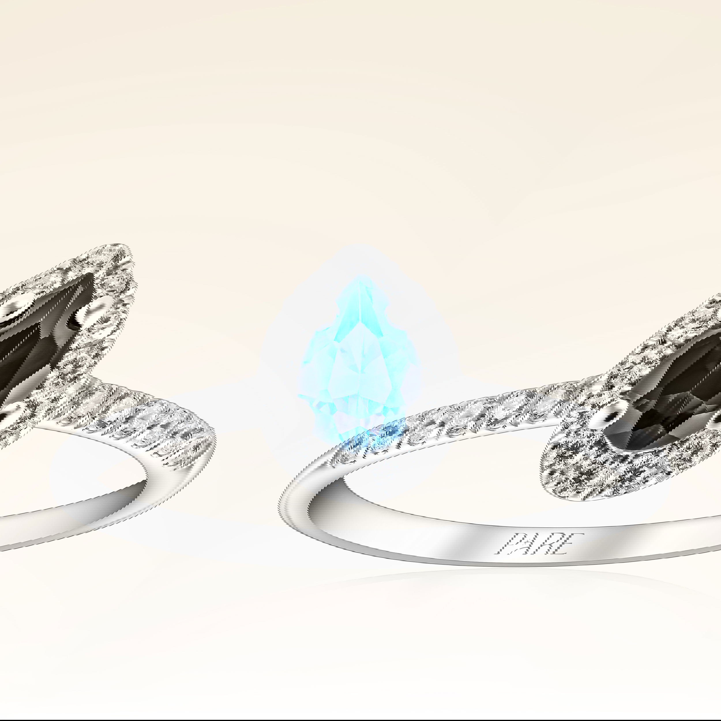 Gelince Haber VerÜründe G renk SI berraklığında damla ve yuvarlak kesim safir ve pırlanta taşlar kullanılmaktadır. Parlaklığı ve netliğiyle dikkat çeken bu taşlar, zarif bir görünüm sunar. Altın ağırlığı, seçilen yüzük ölçüsüne göre farklılık gösterebilir.