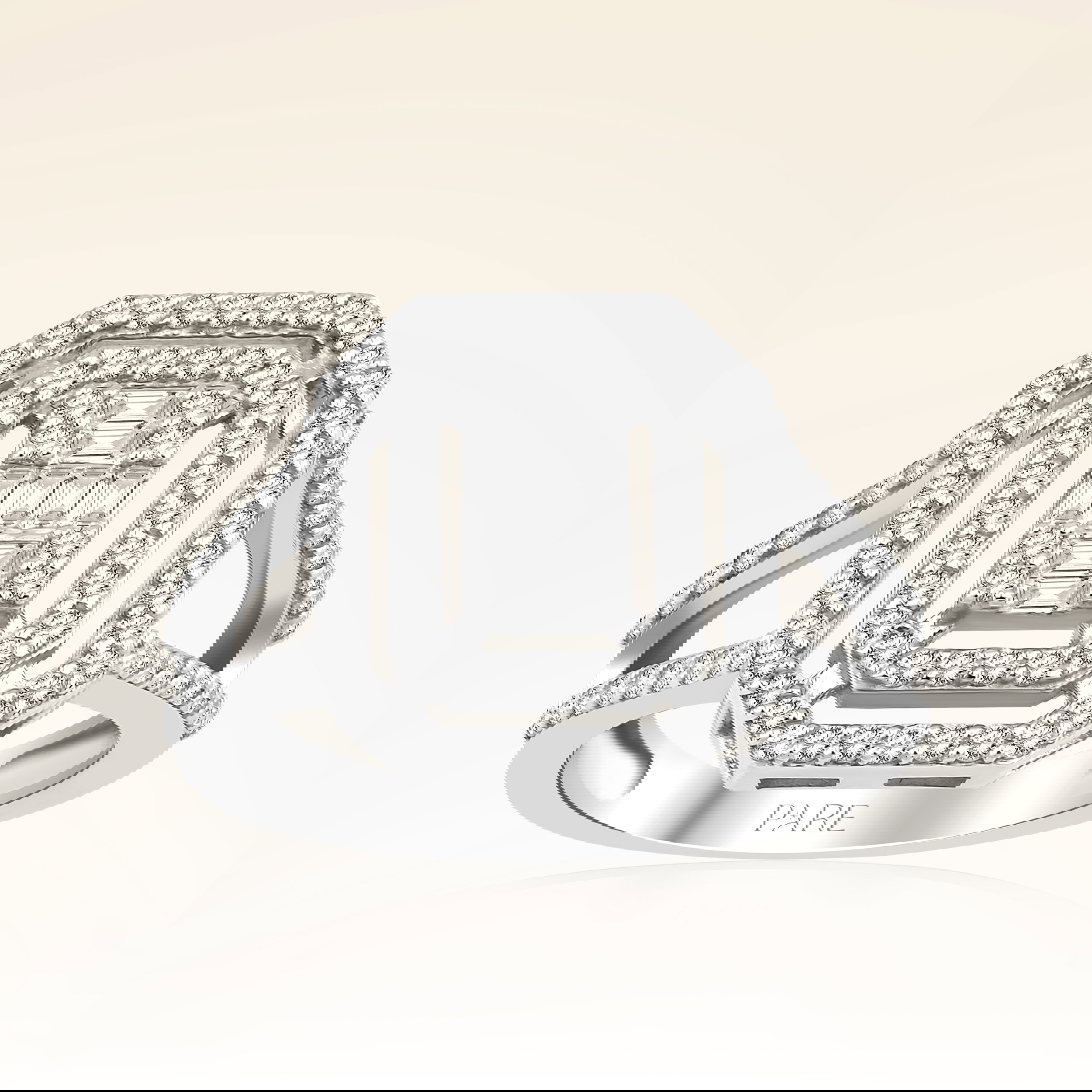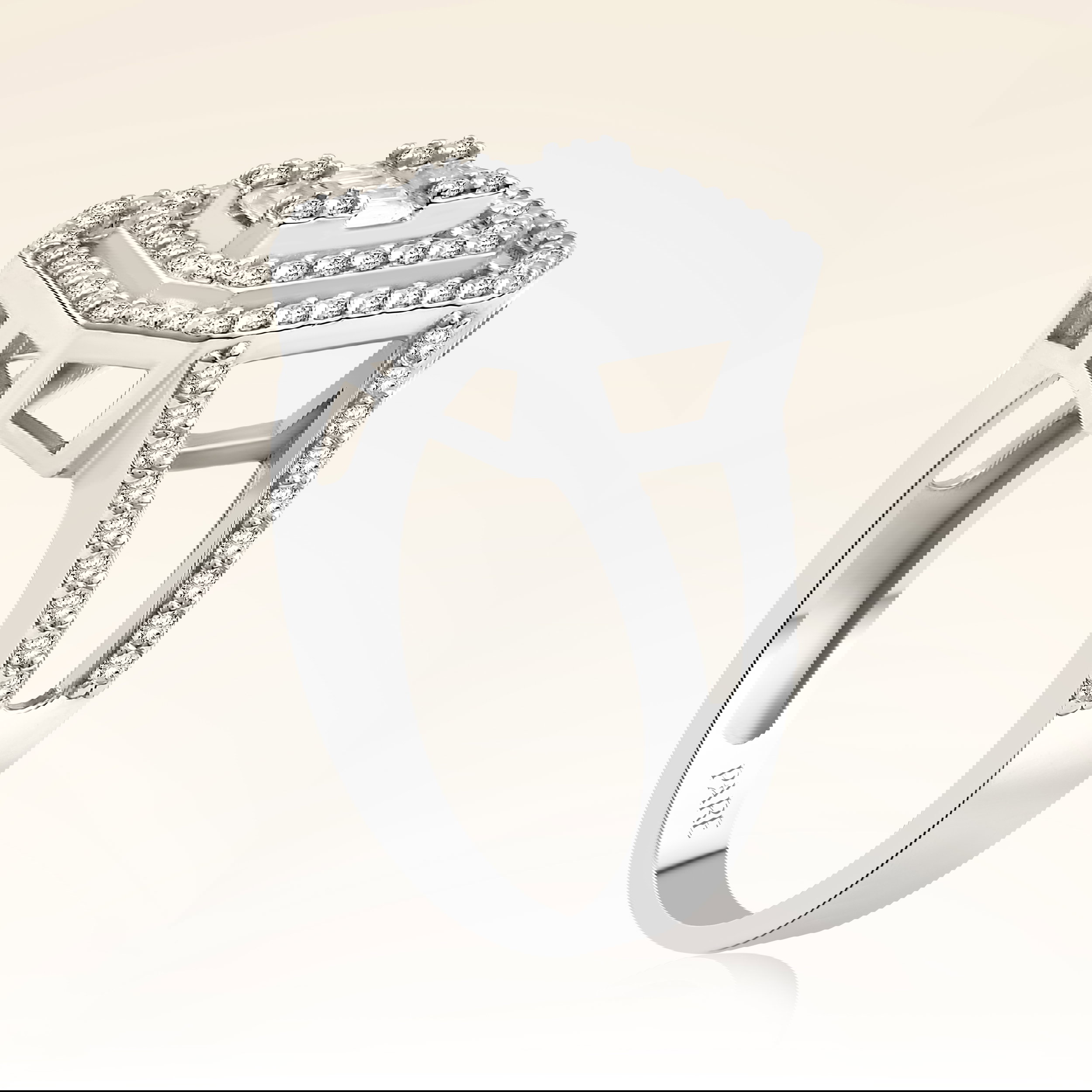 Üründe G renk SI berraklığında baget ve yuvarlak kesim pırlanta taşlar kullanılmaktadır. Parlaklığı ve netliğiyle dikkat çeken bu taşlar, zarif bir görünüm sunar. Altın ağırlığı, seçilen yüzük ölçüsüne göre farklılık gösterebilir.