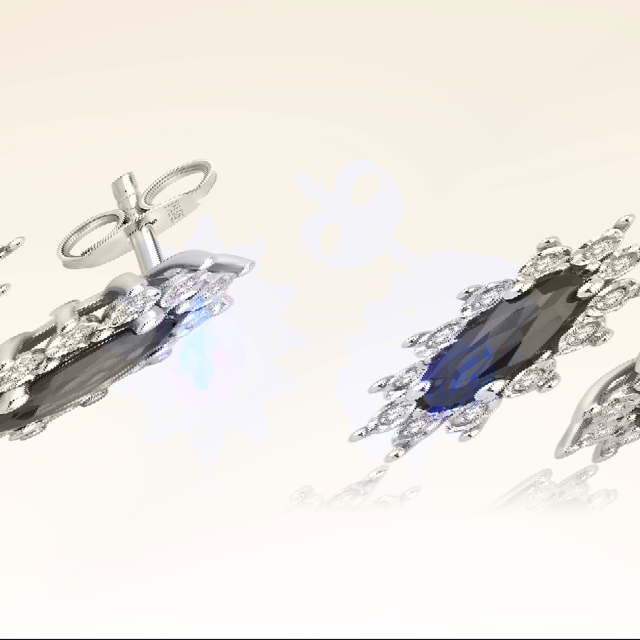 0,70 Karat Efektli Pırlanta Safir Küpe - Yaklaşık 2,18gr. 14 Ayar Beyaz Altın