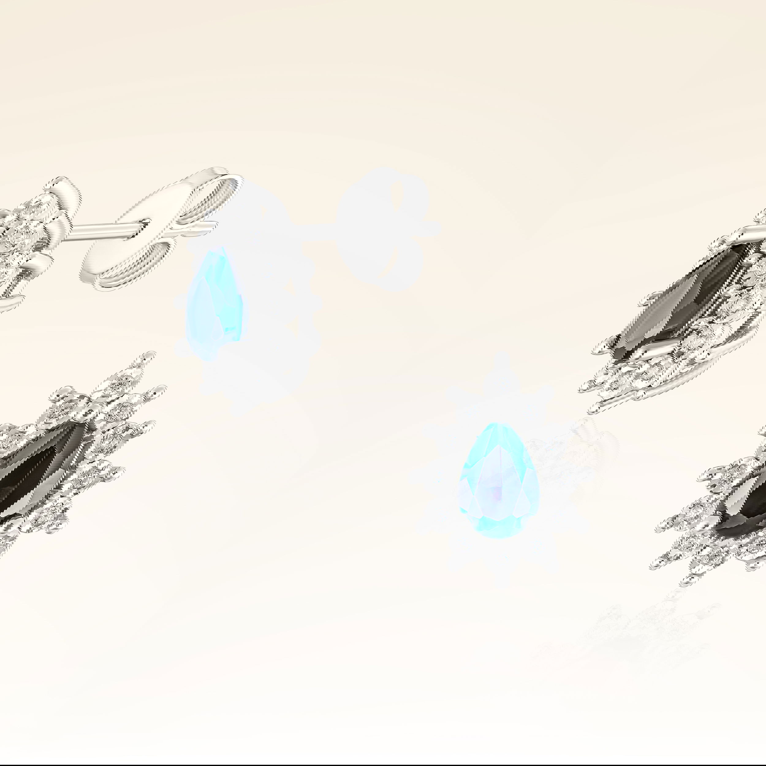 Üründe G renk SI berraklığında damla ve yuvarlak kesim safir ve pırlanta taşlar kullanılmaktadır. Parlaklığı ve netliğiyle dikkat çeken bu taşlar, zarif bir görünüm sunar.