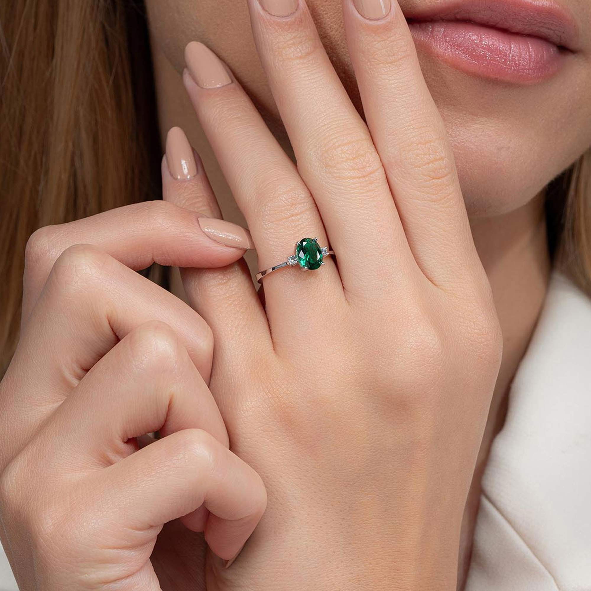 Gelince Haber VerÜründe G renk SI berraklığında oval ve yuvarlak kesim zümrüt ve pırlanta taşlar kullanılmaktadır. Parlaklığı ve netliğiyle dikkat çeken bu taşlar, zarif bir görünüm sunar. Altın ağırlığı, seçilen yüzük ölçüsüne göre farklılık gösterebilir.