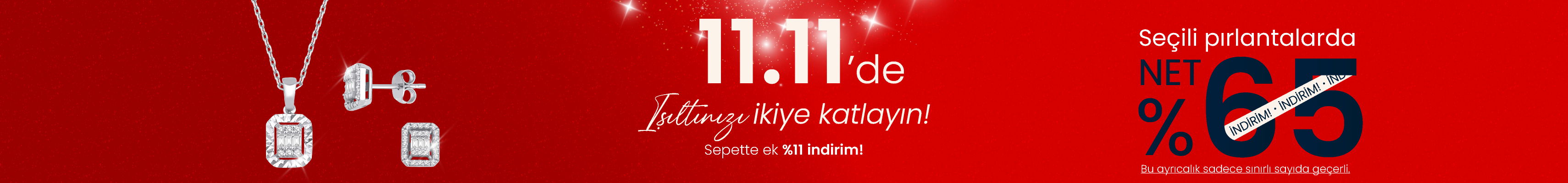 11.11, yılın en çok beklenen alışveriş günlerinden biri. Dünya genelinde başlayan bu indirim geleneği, artık özel gün hediyesi almak isteyenlerden kendini şımartmak isteyenlere kadar herkes için büyük bir fırsat haline geldi. Pare Pırlanta olarak biz de bu özel günde, ışıltının en zarif halini daha ulaşılabilir kılmak için seçili pırlanta yüzük, kolye, küpe ve bileklik modellerinde özel indirimler sunuyoruz.