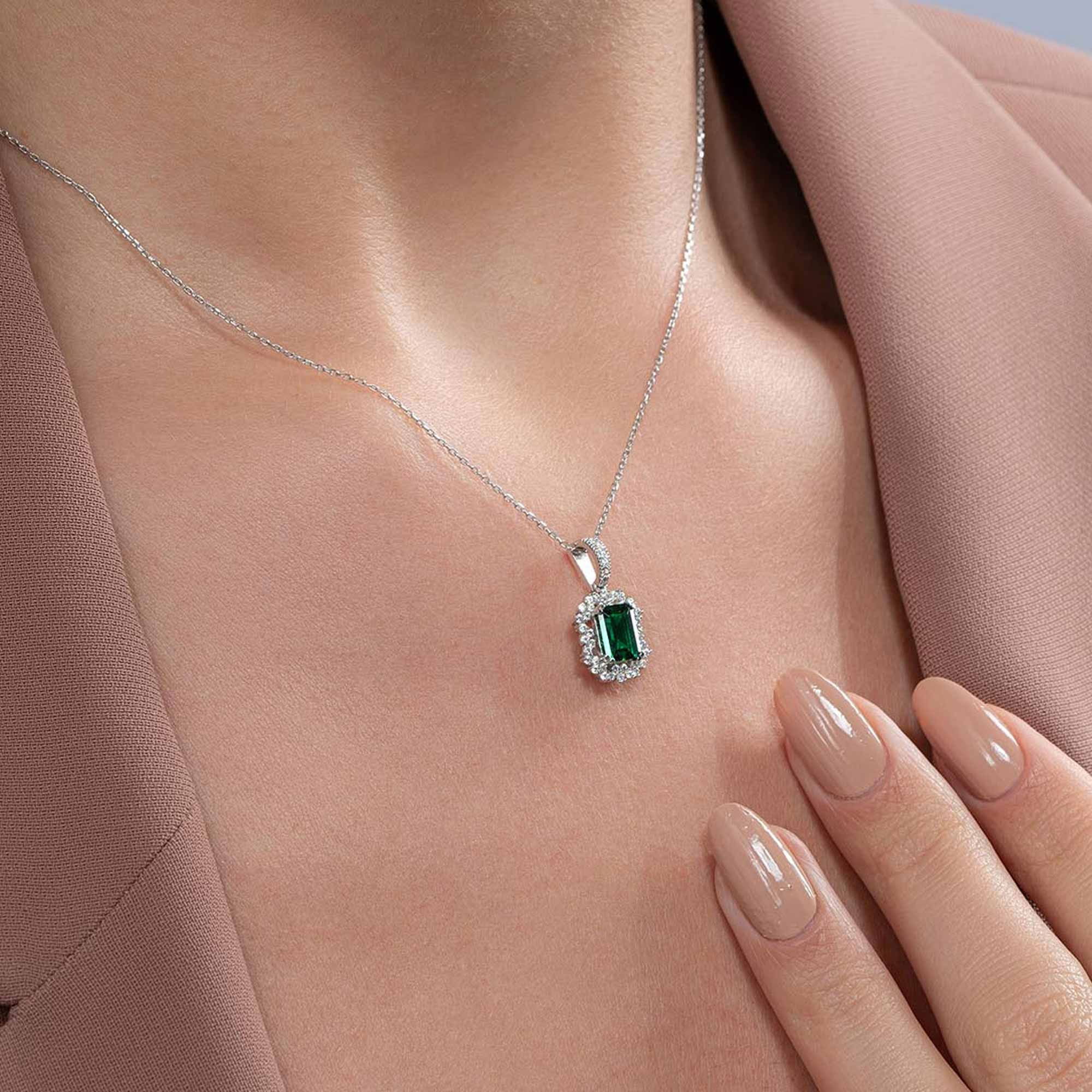 1,12 Karat Pırlantalı Zümrüt Kolye - Yaklaşık 2,29gr. 14 Ayar Beyaz Altın