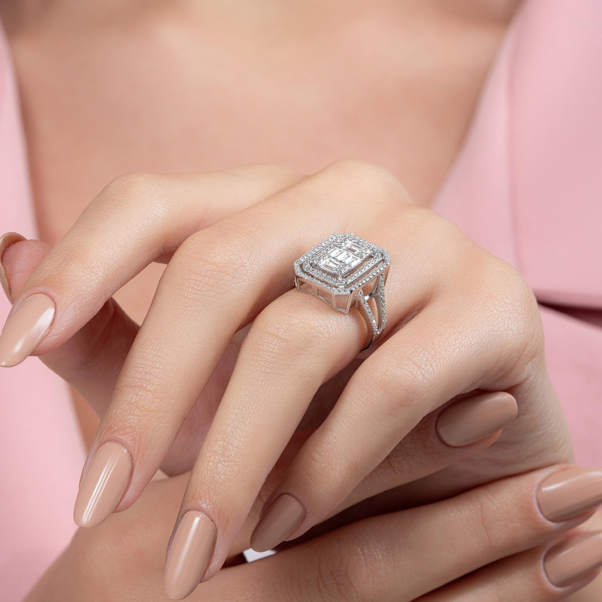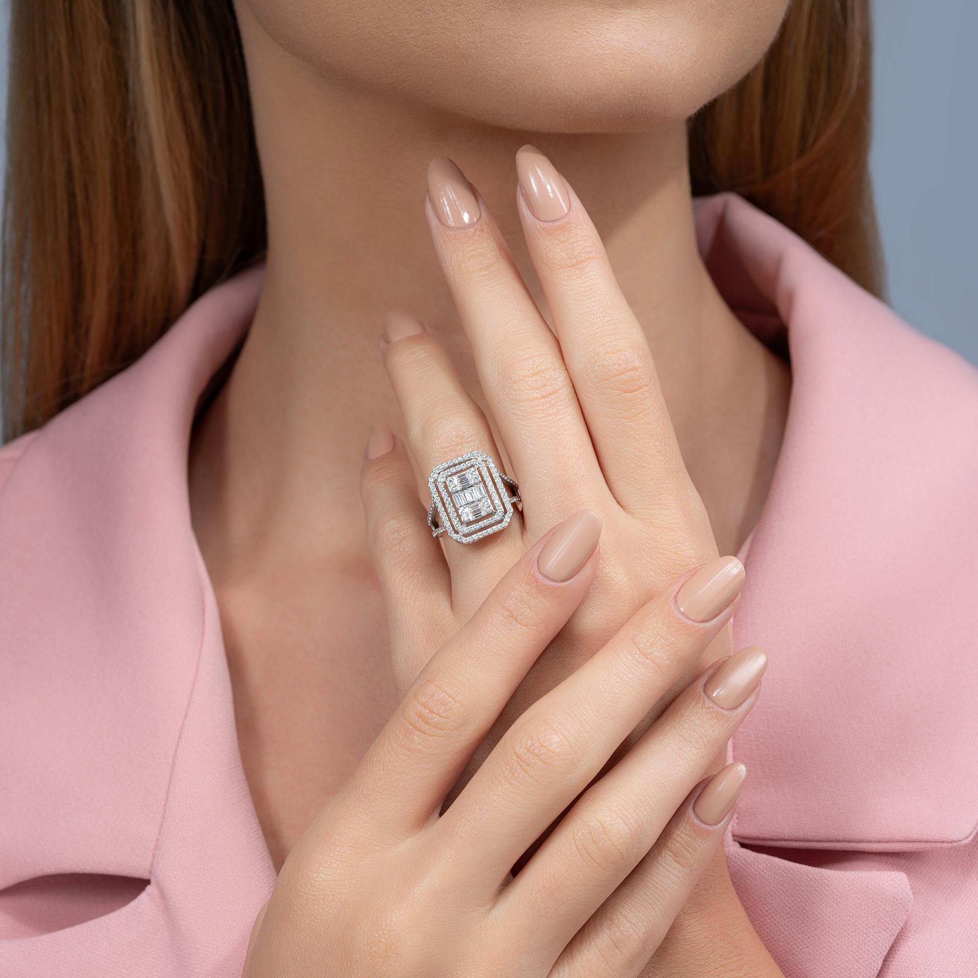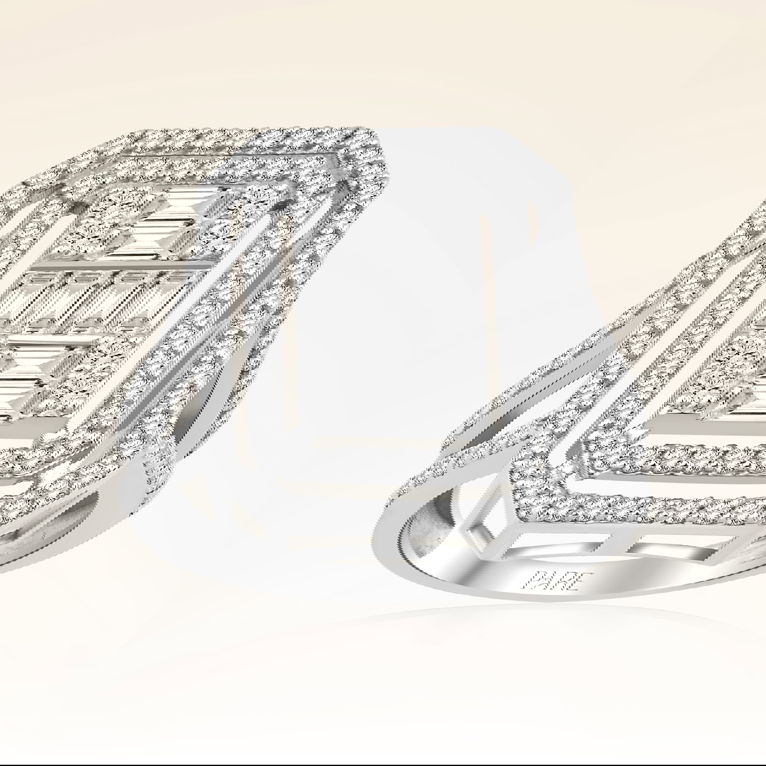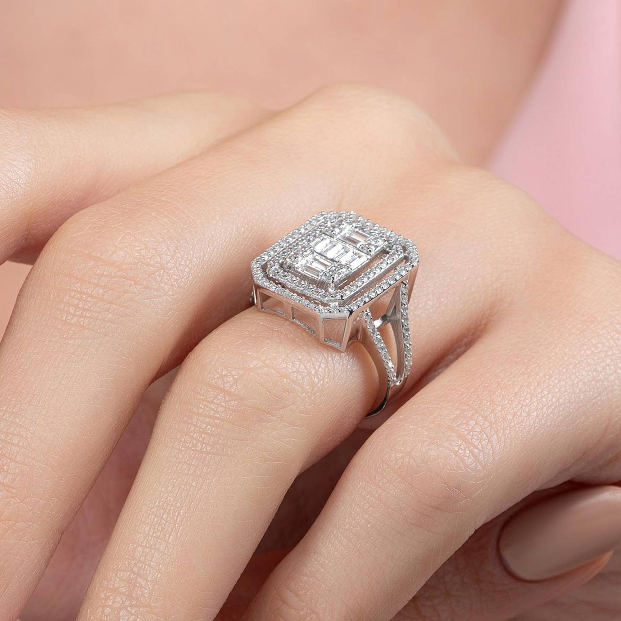 1,28 Karat Kolu Taşlı Baget Pırlanta Yüzük - Yaklaşık 5,19gr. 14 Ayar Beyaz Altın