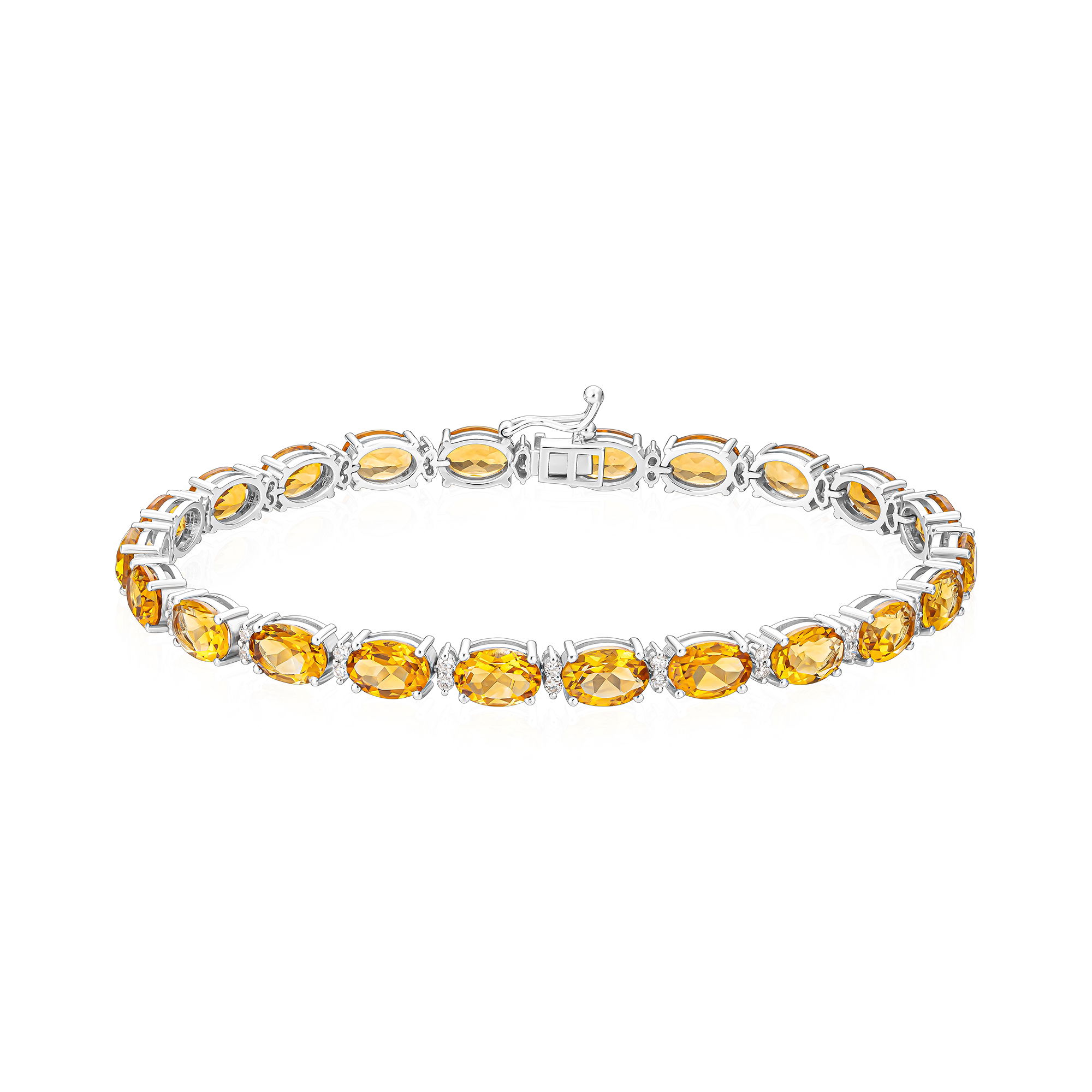 15,40 Karat Pırlantalı Sitrin Bileklik - Yaklaşık 11,26gr. 14 Ayar Beyaz Altın