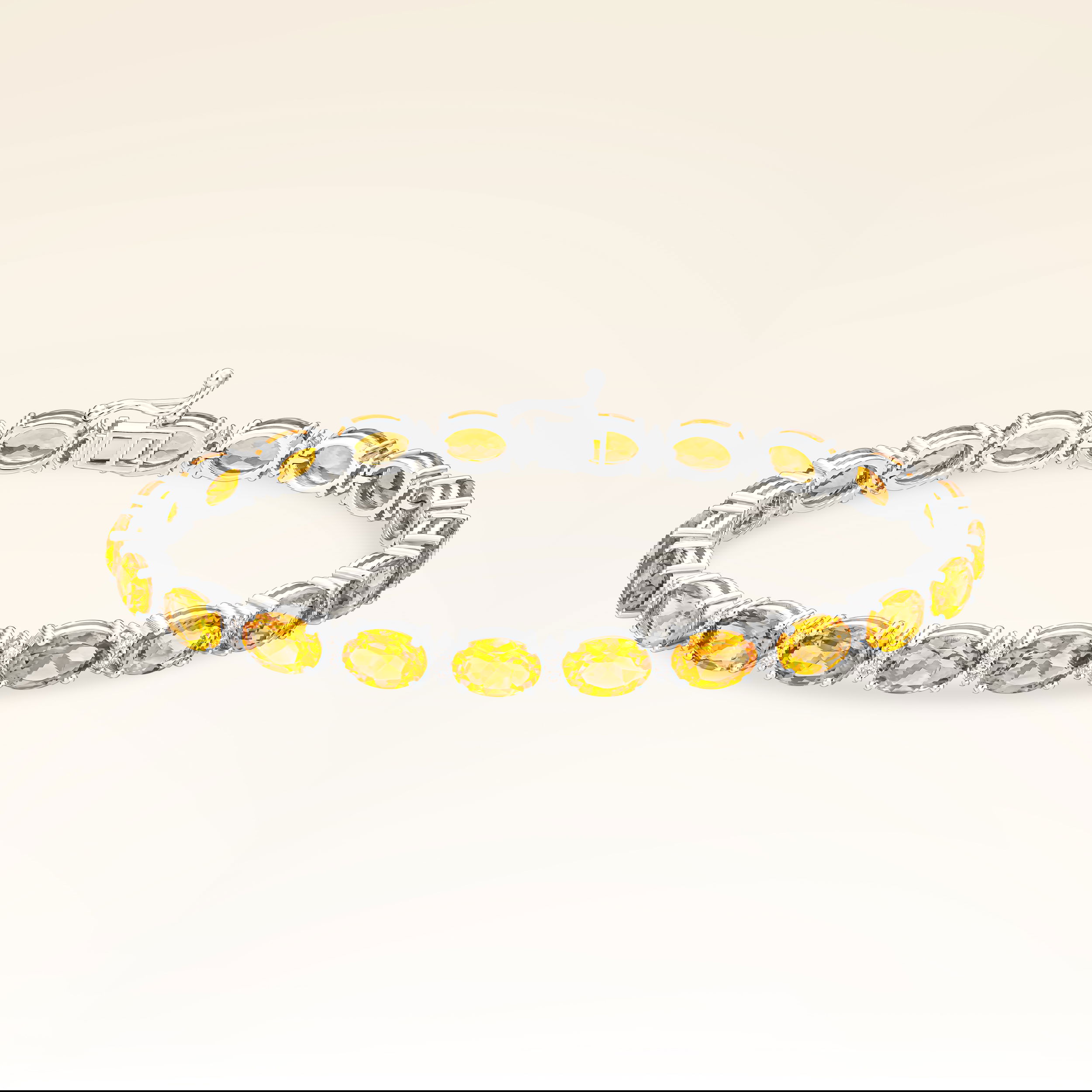 Üründe G renk SI berraklığında oval ve yuvarlak kesim sitrin ve pırlanta taşlar kullanılmaktadır. Parlaklığı ve netliğiyle dikkat çeken bu taşlar, zarif bir görünüm sunar. Altın ağırlığı seçilen bileklik ölçüsüne göre değişiklik gösterebilir.