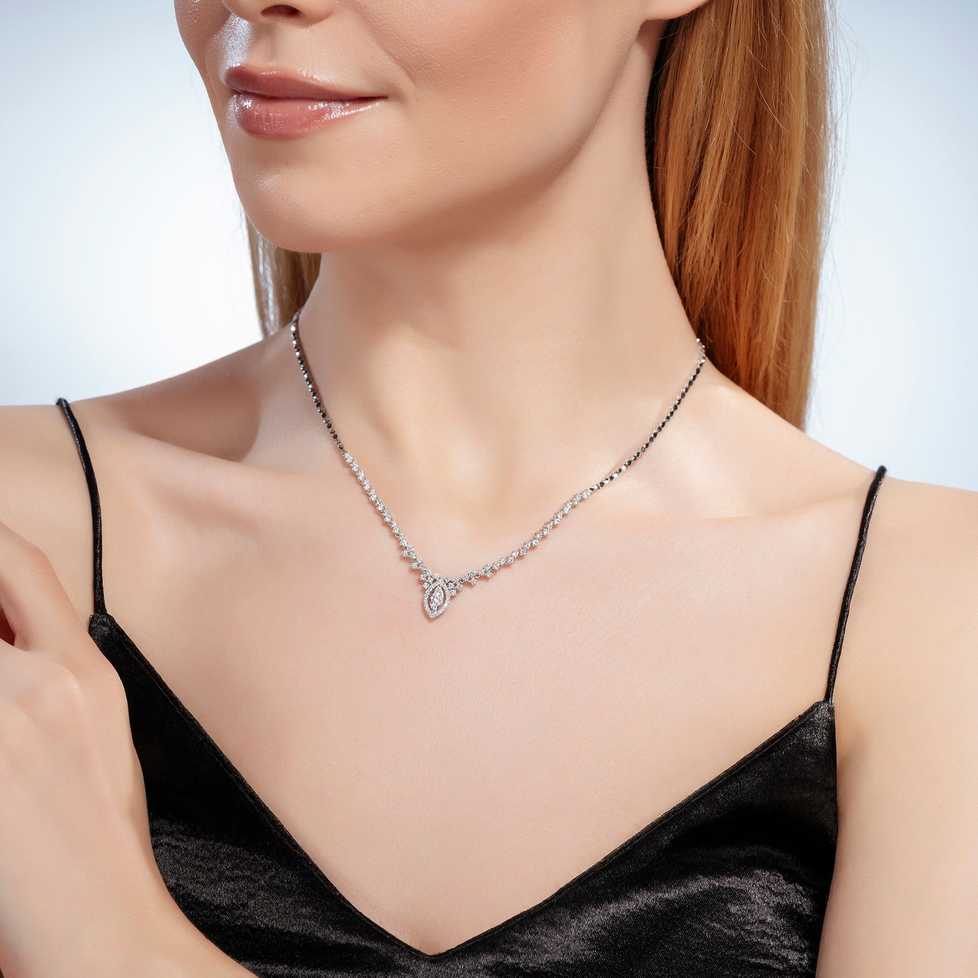 1,57 Karat Suyolu Pırlanta Gerdanlık - Yaklaşık 12,85 gr. 14 Ayar Beyaz Altın